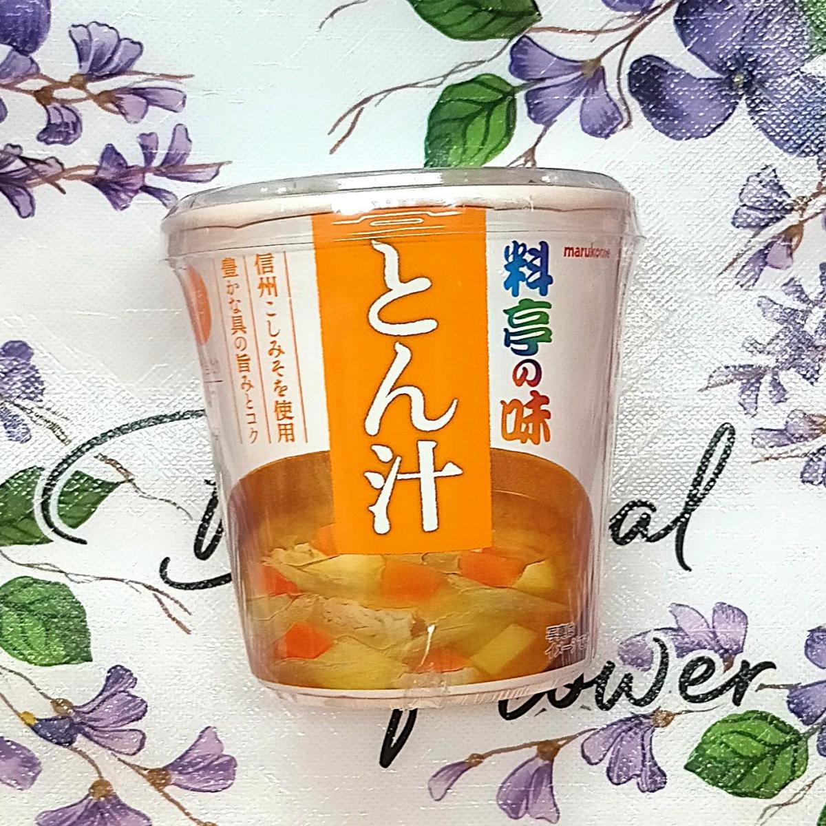 お湯を注ぐだけでとん汁が食べられてホント便利ですよね〜。ちゃんと形のある具材(じゃが芋、人参、豚肉等々)が入っていてコクがある美味しいとん汁でした。忙しい時やひとりの時に、温かい汁物が飲めて便利だなぁと思います。