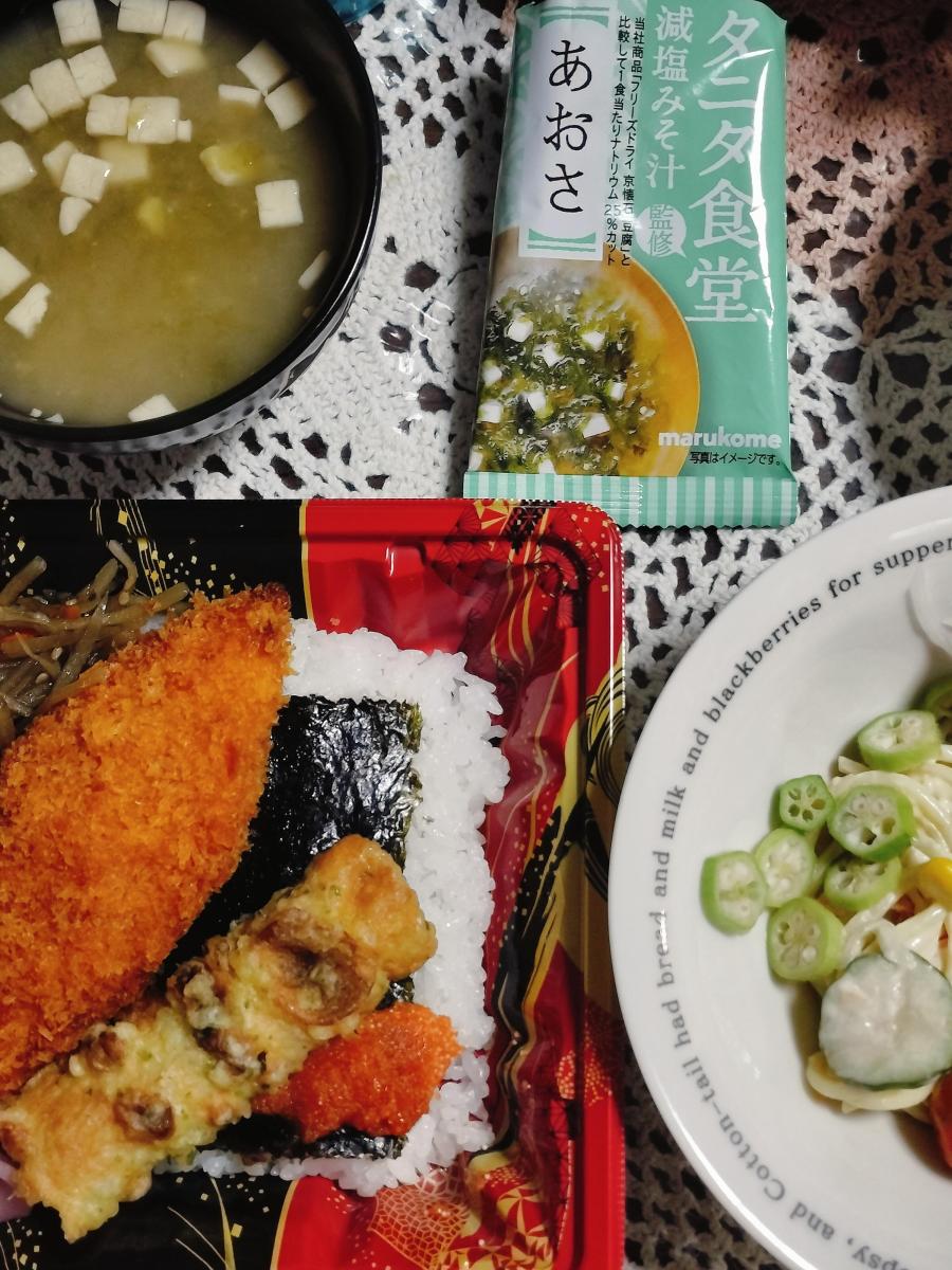 具はあおさと豆腐のみとシンプルですが、あおさがたっぷり入っており、磯の香りがしっかり感じられてとても美味しかったです。豆腐は小さめですが、主役のあおさのボリュームがあるので私にはちょうど良かったです。減塩ではありますが味付けもしっかりしているので物足りなさは感じません。