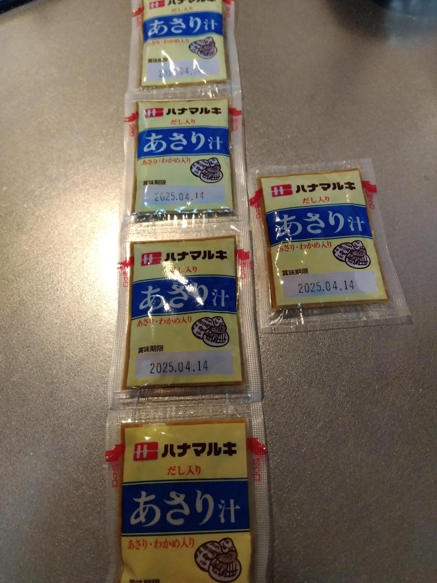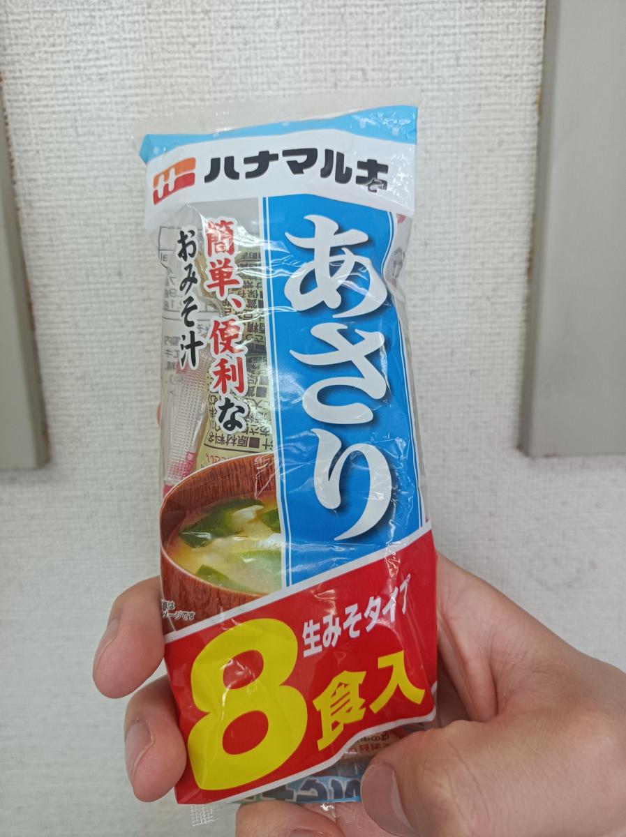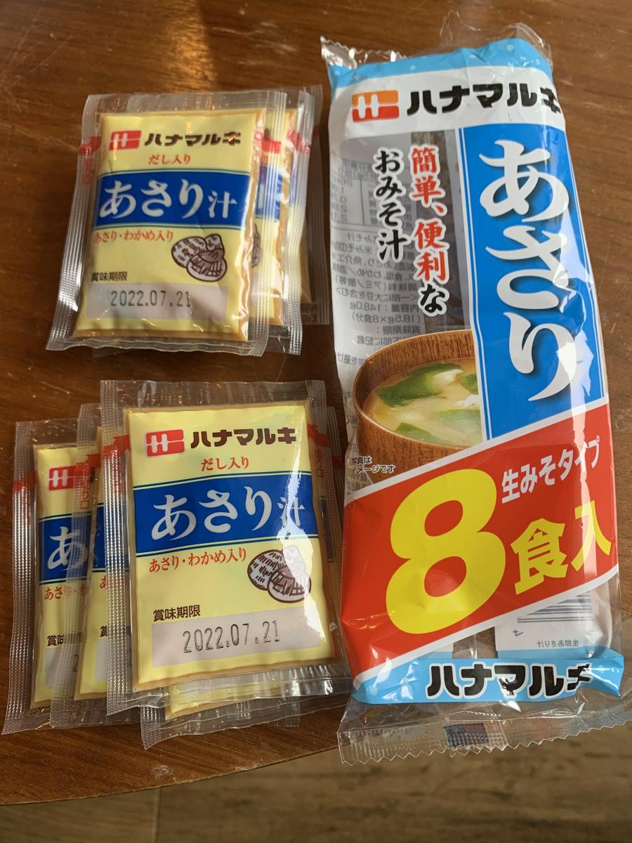 ハナマルキ即席あさりのみそ汁は8食も入っていて安くて美味しいです。私は朝食にハナマルキのあさりとしじみの即席味噌汁をその時の気分によって飲み分けています。お湯さえあれが簡単に美味しくあさりの風味を十分味わえます、たまには残った焼きナスなどを追加して入れています。
