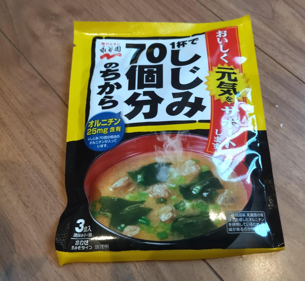 永谷園一杯でしじみ70個分というキャッチフレーズを見て購入しました。飲んだ後のみそ汁にシジミの味と香りがあるとホッとして、翌日二日酔いにならないような気がします。お酒の飲みすぎには注意しましょう。