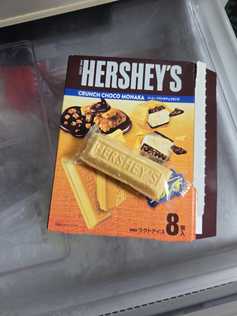チョコモナカやHERSHEY'Sが特別好きではないので、食べてみたらフツーのチョコモナカ。と言う印象。ジャリジャリの食感はおもしろいと言えばそうですが、既存のチョコモナカだって、固まったチョコ部分はある意味ジャリジャリした感じだし…