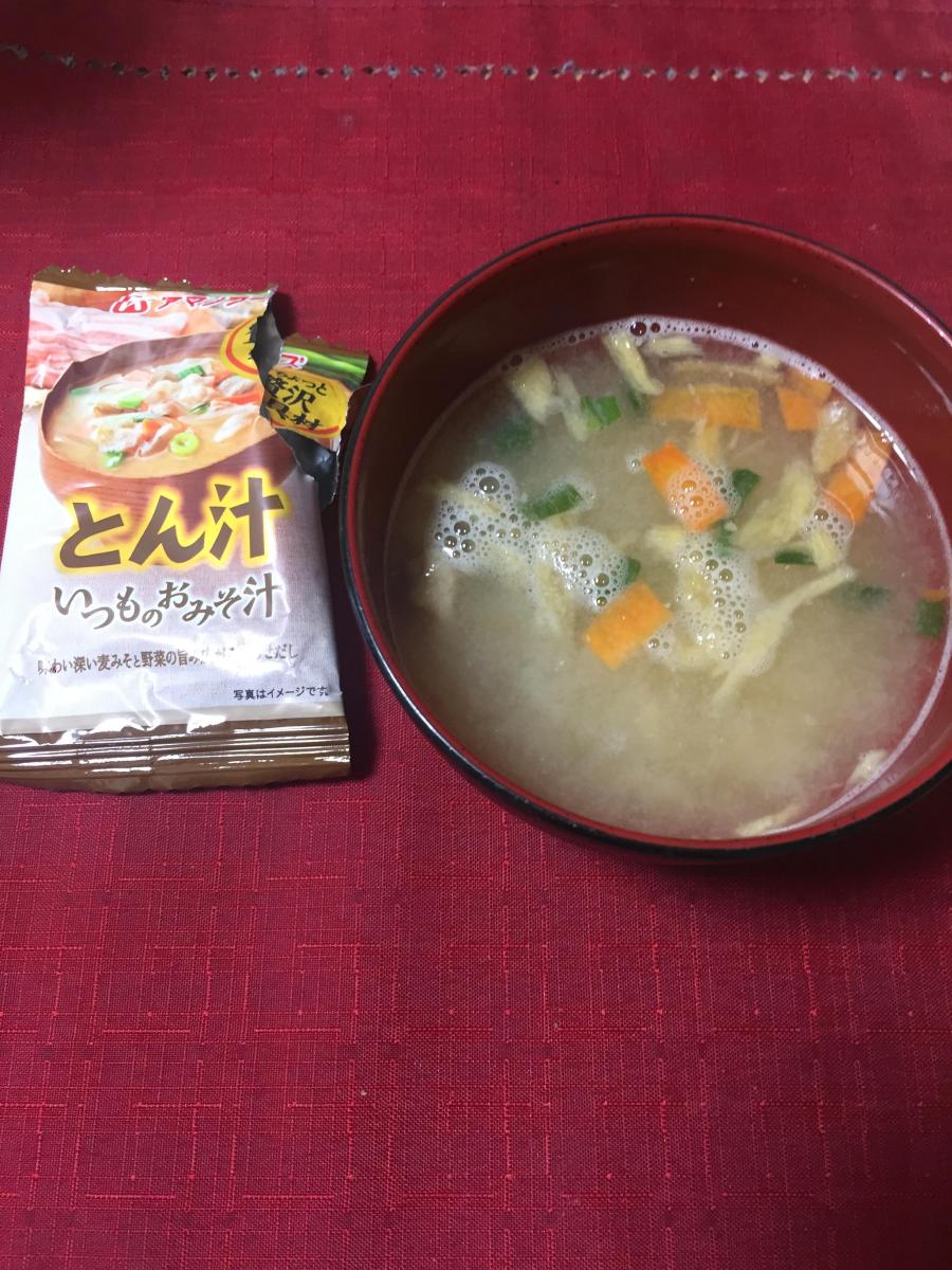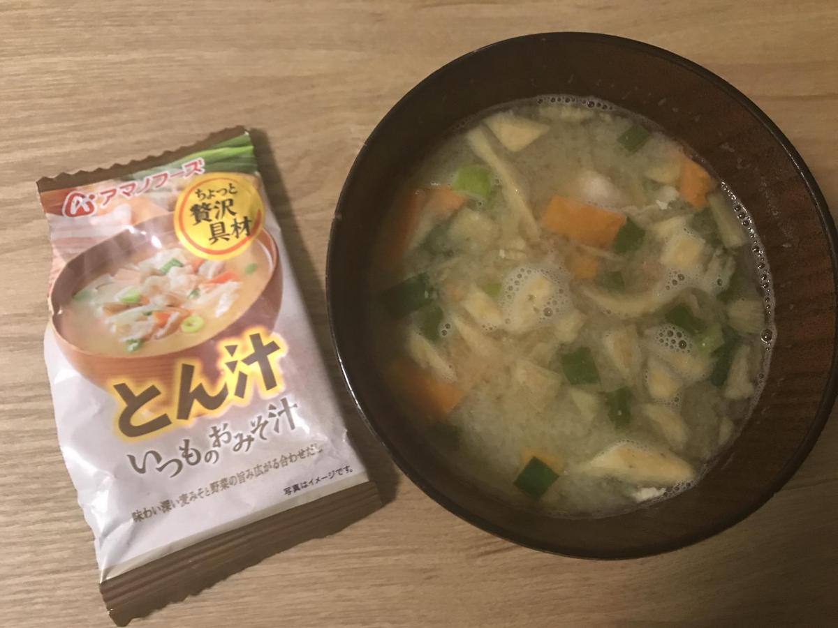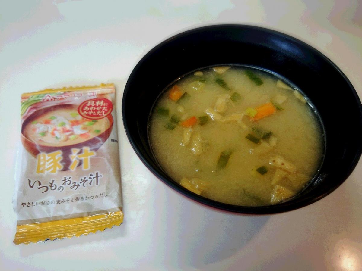合わせ味噌に豚肉の旨味出ていて、インスタントとは思えない美味しさでした。