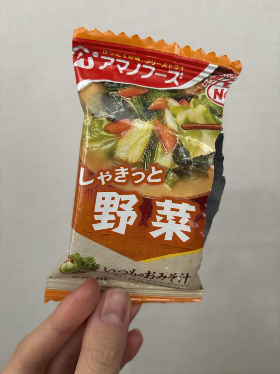野菜不足を感じる時には「野菜」のお味噌汁を選ぶようにしています。仕上がりが鮮やかで、見ているだけで気分が上がります。キャベツ・ほうれんそう・ねぎ・にんじん・わかめが入っていて、シャキシャキ食感から野菜の新鮮さが感じられます。まろやかな味噌味が野菜の甘みと合っていて、食が進みました。ほっと一息できるお味噌汁で気に入っています。