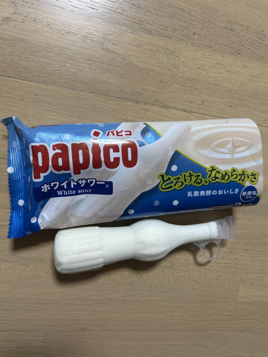 パピコのホワイトサワー味を食べた事がなかったので気になり購入してみました。2本も入っているのでお得な感じがします。氷はなめらかで食感もよく食べやすいです。ホワイトサワー味は乳酸菌飲料のような甘酸っぱくて爽やかな味わいです。サワー感はあまり分からなったですが、美味しい味わいでした。また購入してみたいなと思いました。