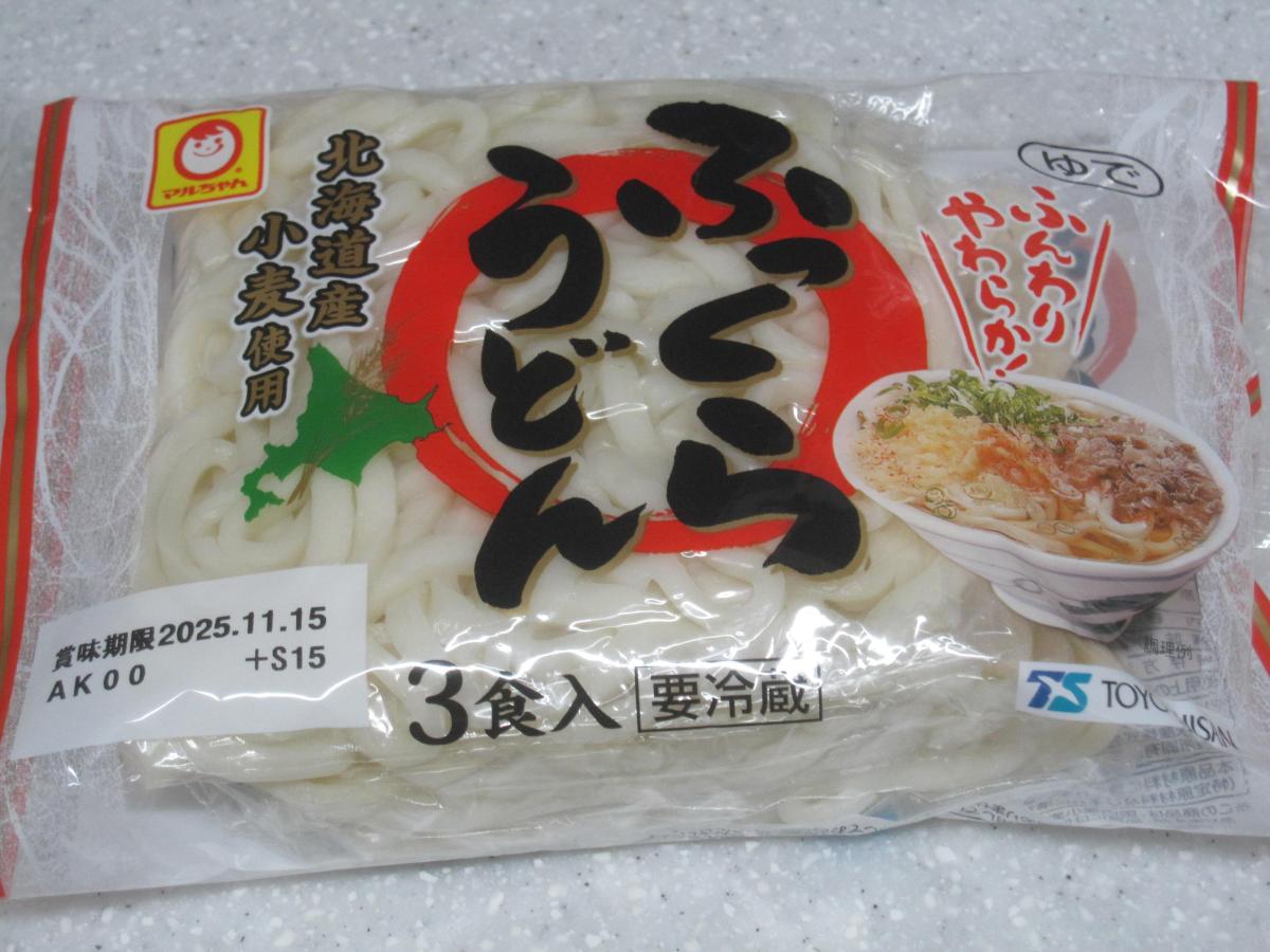 商品名の通りゆであがりはふっくらしており、つるつるでやわらかめの食感です。しこしこのうどんではないです。