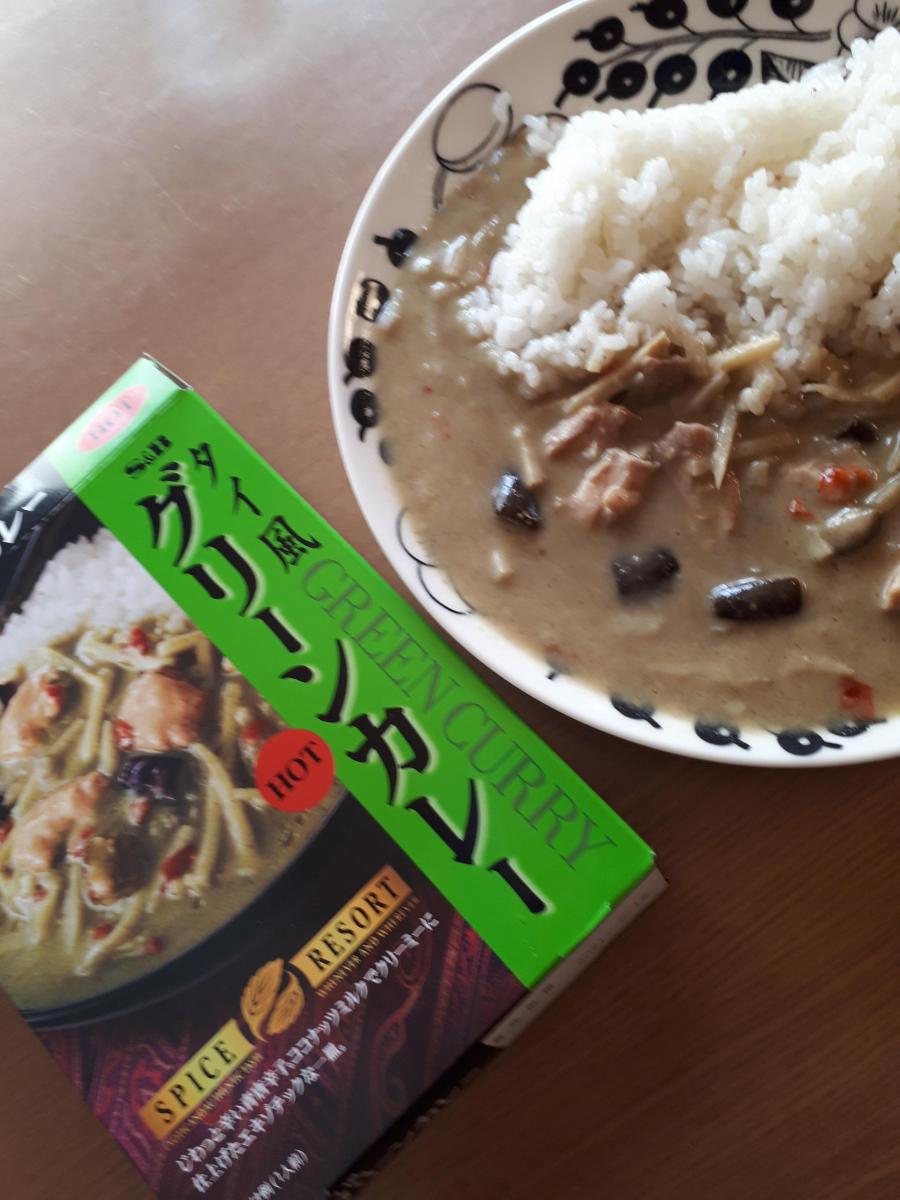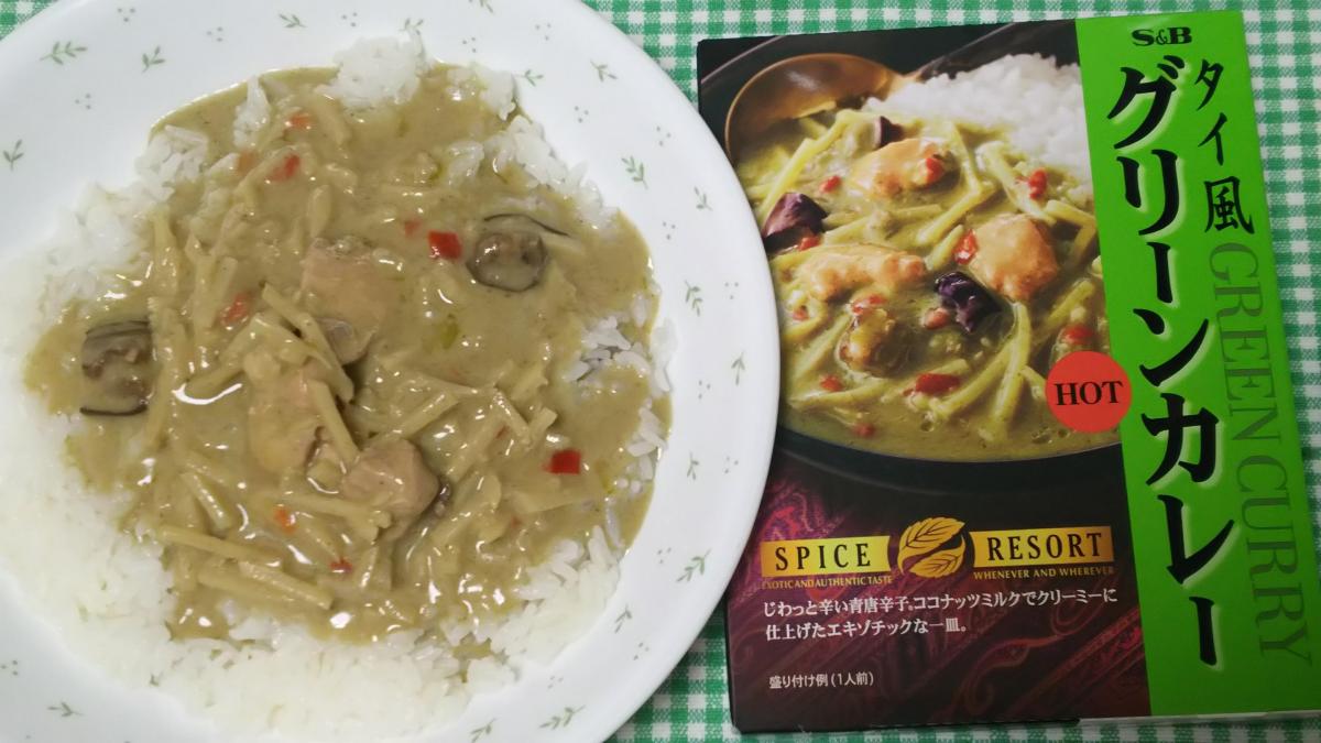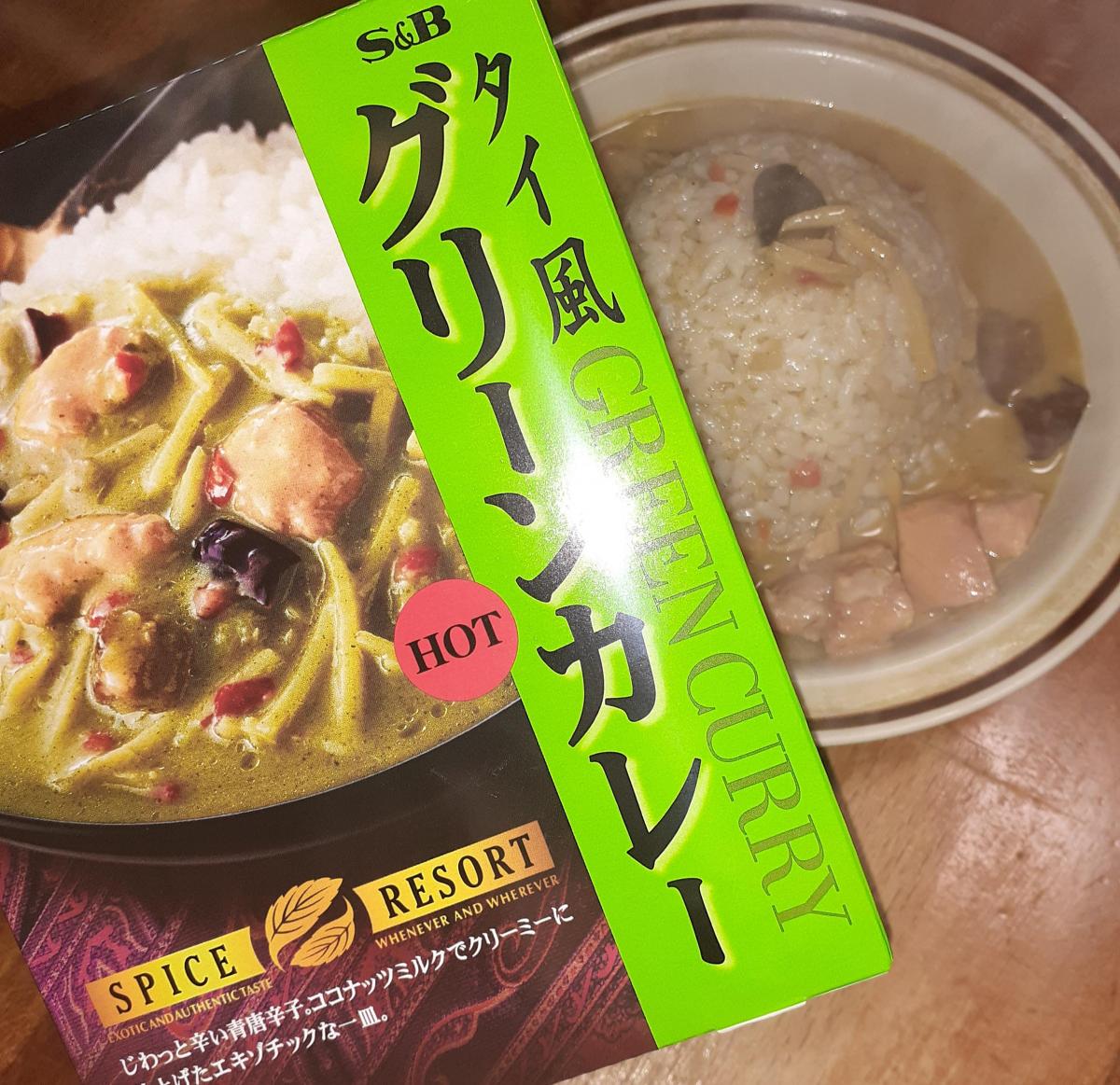 ドジッ娘属性から生まれたカレーになる予定だった物みたいな姿なので、グリーンカレーは食わず嫌いだったのですがS&Bというブランドに絶大なる信用を寄せているので賭けてみました。