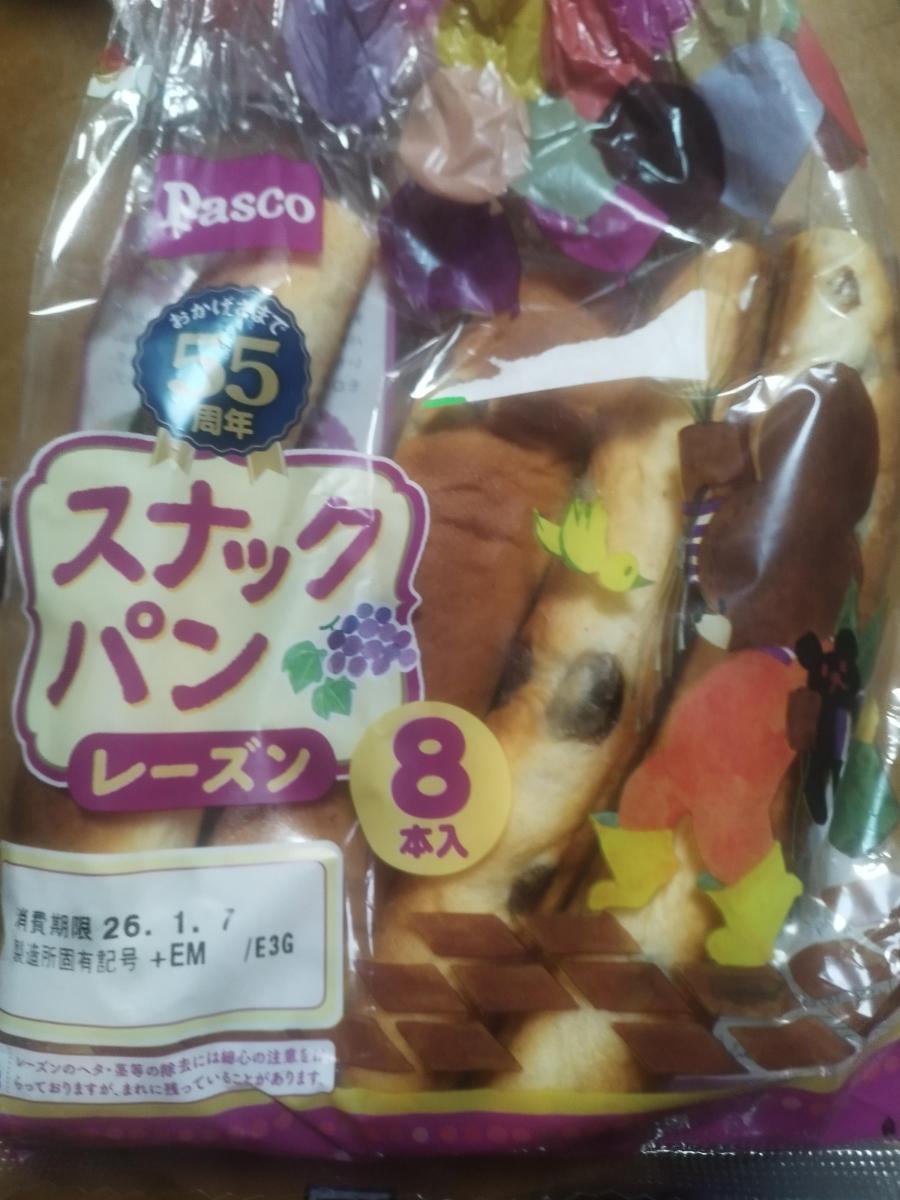 Pascoのスナックパンが大好きですが、レーズン味を初めて見ました。レーズンも好きなので、美味しいに違いないと喜んで購入しました。