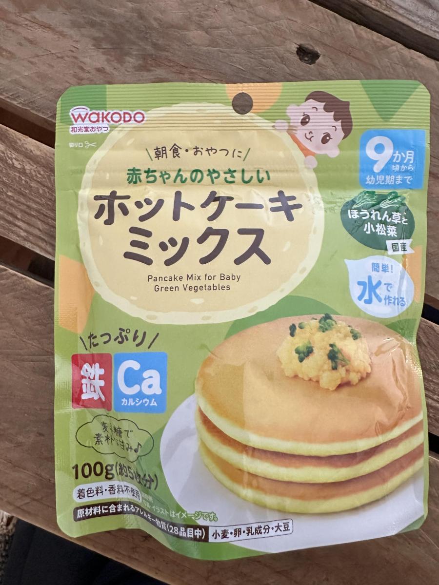 9ヶ月頃から食べさせられるホットケーキは1歳未満の子どもに食べさせやすく、作りたい量を計って作れるので便利です。鉄分とカルシウムも入っており、子どもに嬉しい商品だなと思います。ほうれん草と小松菜が入っていて、健康的なのも嬉しいです。子どもも喜んで食べていました。