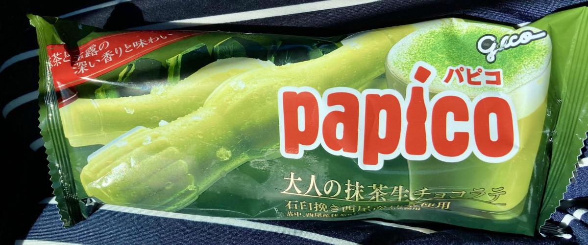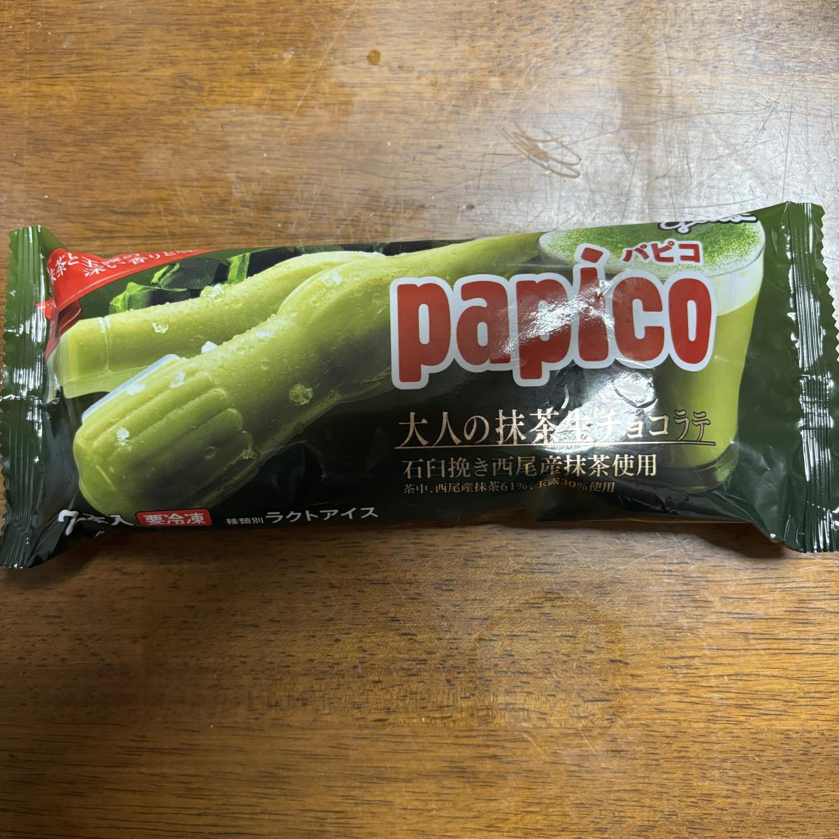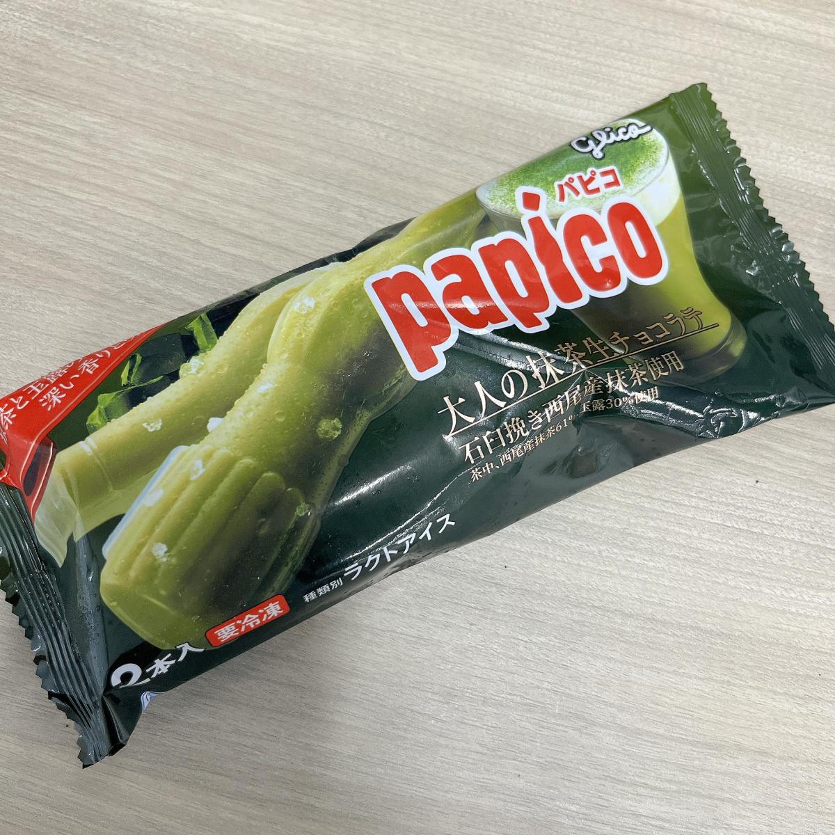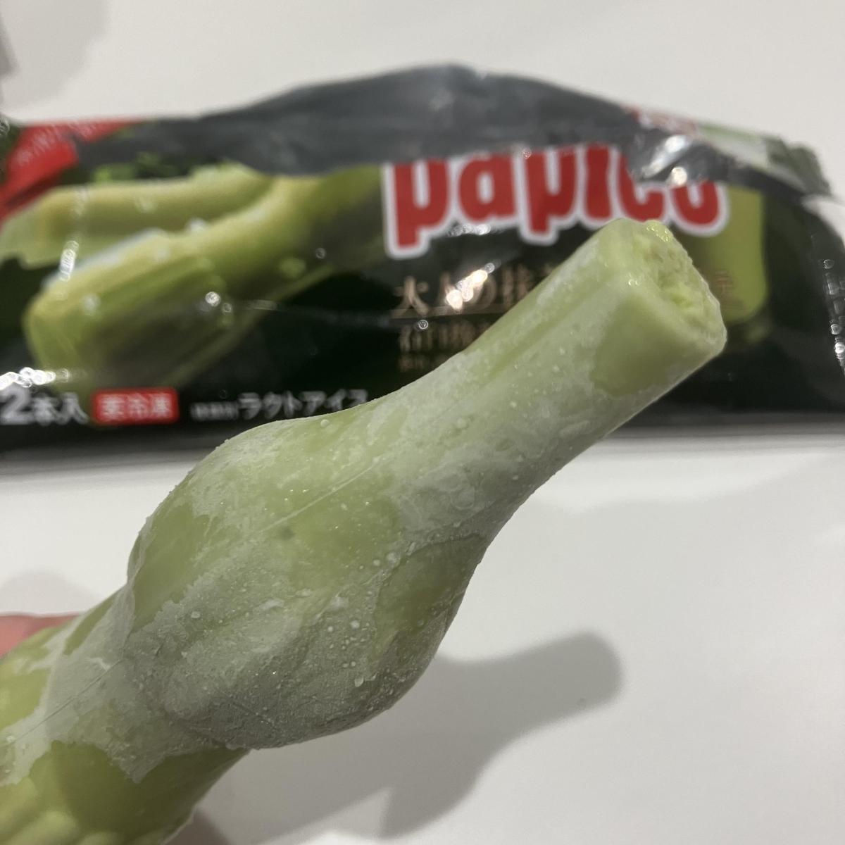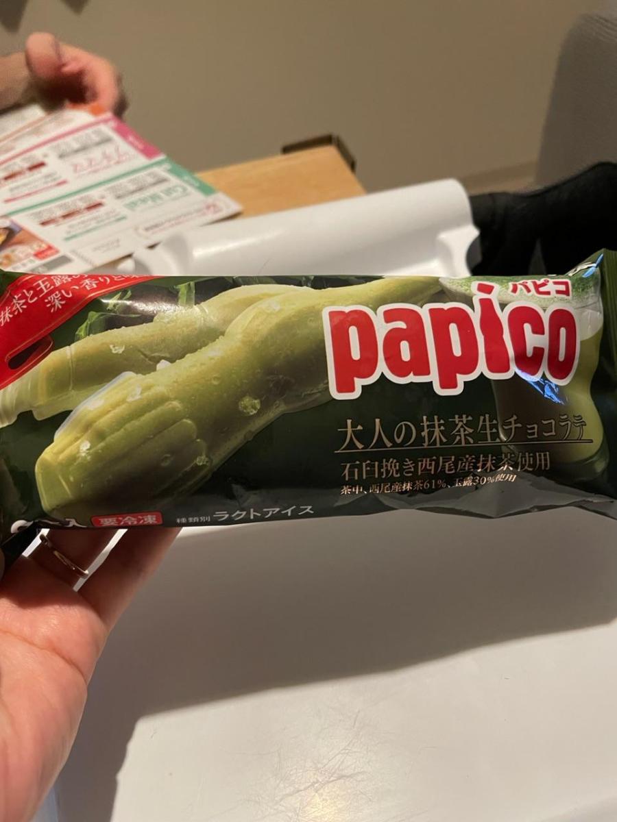 こちらのパピコは通常のものより少し値段が高いですが、抹茶の味わいが濃厚で非常に美味しいです。抹茶の生チョコ感がしっかり感じられます。抹茶が好きな方には非常にお勧めです。