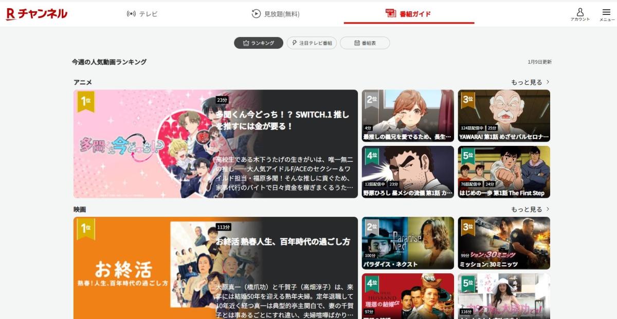 ポイント消費に時々利用する『楽天TV(旧楽天ショウタイム)』