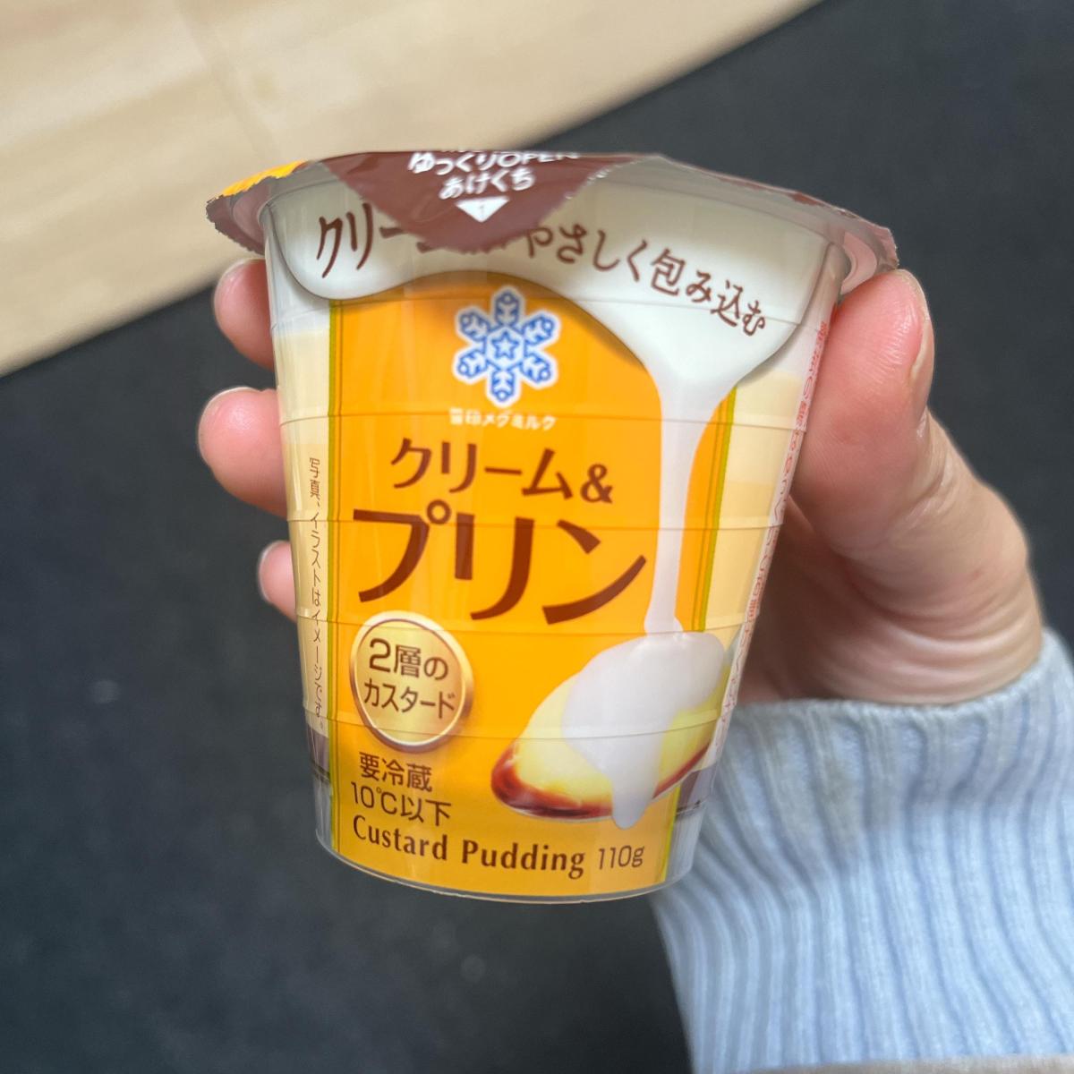 メグミルク クリーム&プリン味のネーミングに惹かれてどんな味か試したく購入してみました。プッチンプリンをもうすこしやわらかくしたようなトロっとした食感でした。卵が入っていない?のでプリン味がやや薄めにかんじました。コーヒーゼリーにのせるようなフレッシュクリームが上側にたっぷりで、甘さが強めで下のカラメルは苦みはほぼ感じず甘さが強めでした。