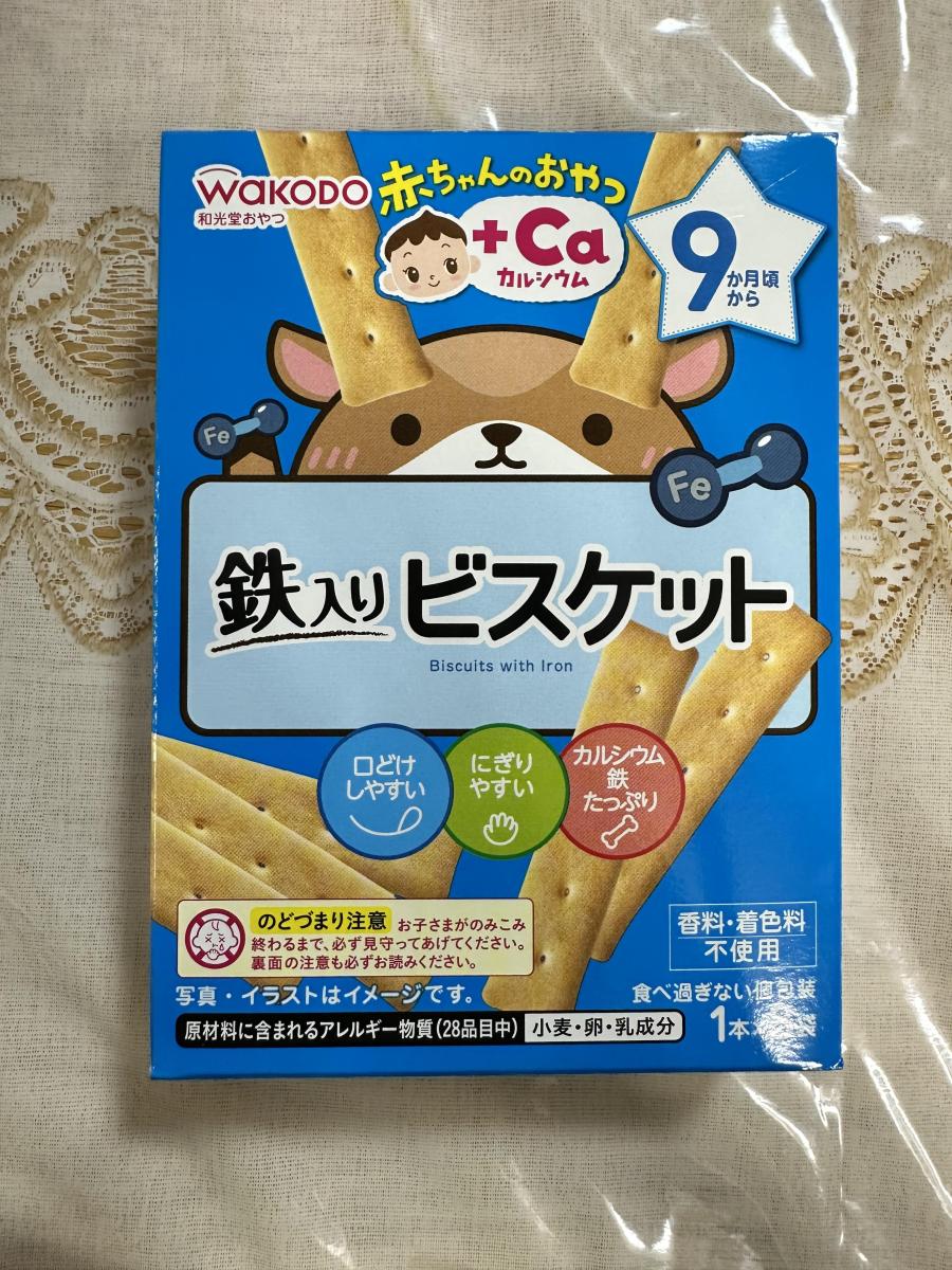 他のビスケットに比べて固くてはじめは食べにくそうでしたが、段々ちゃんと噛んで食べられるようになりました。固めなのでボロボロにならず、持ちやすそうです。カルシウムと鉄入りは嬉しいです。