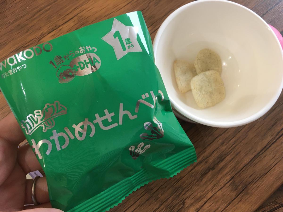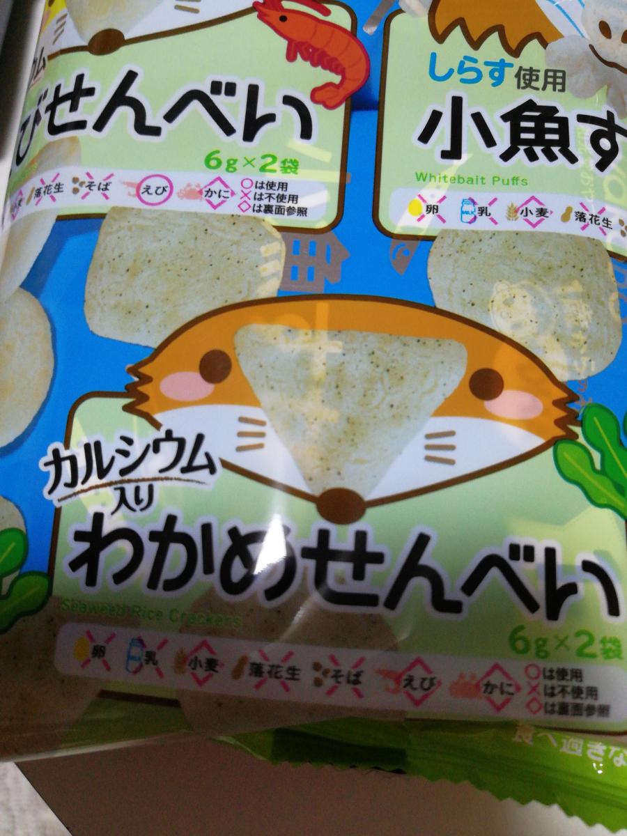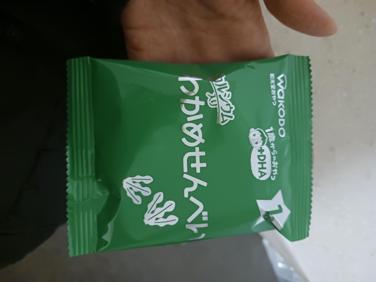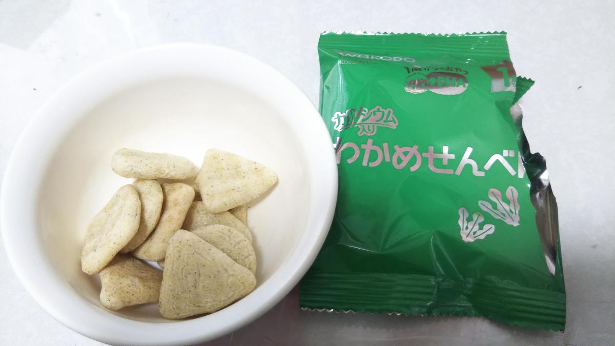 ワカメってどうなんだろうと思ったけど、全然ワカメな感じがしないで普通の子ども用のおせんべいって感じでした。ほんのり塩気もあり、子どももパリパリ食べました。カルシウムが入っていたりするので普通のお菓子をあげるよりはいいかと思ってあげてます。一袋に入ってる量もちょうどいいです。