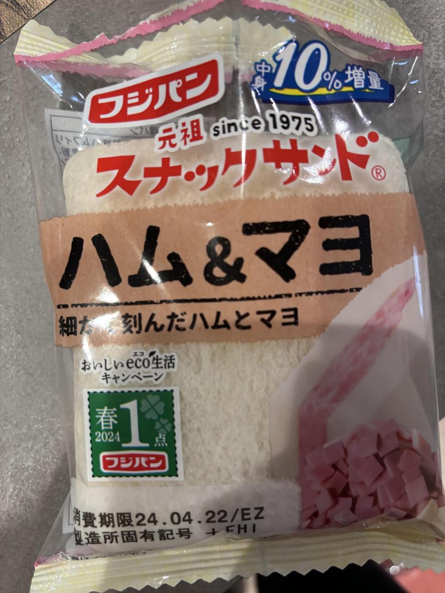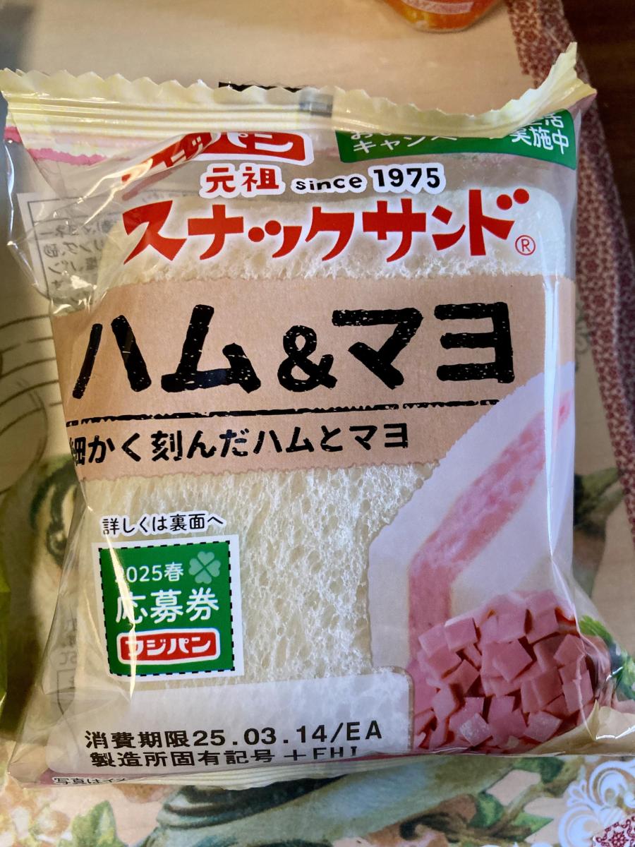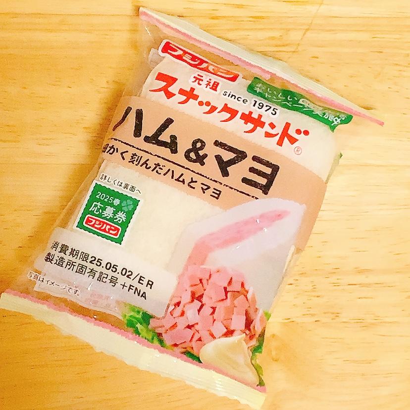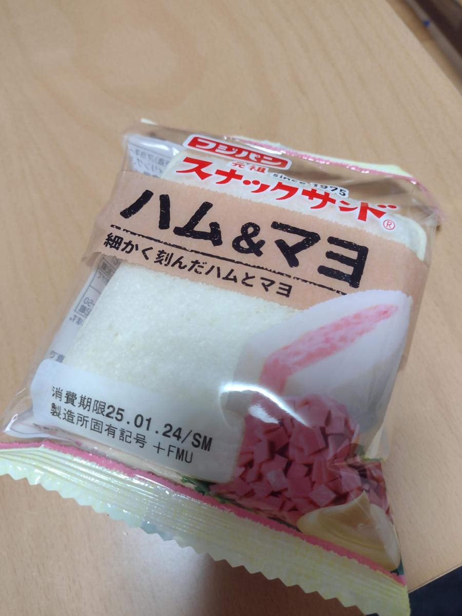 ヤマザキのランチパックと並ぶサンドイッチの定番、フジパンのスナックサンド。こちらのハム&マヨはシンプルな具材で飽きが来ないですね。