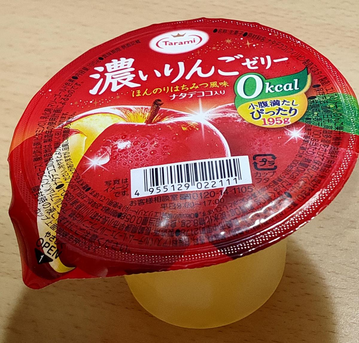 たっぷりサイズで量的にも満足するし、味もネーミング通り、リンゴ味が濃厚でしっかりしていて大満足です。たらみというと蒟蒻ゼリーをイメージしますが、こちらは蒟蒻ではなく寒天を使用しているようで、蒟蒻のような弾力性がなく、食感がなめらかです。ちゅるちゅると食べられます。一方、コリコリした食感は、下の方に入っているナタデココで楽しめます。これで0カロリーなんて信じられないです。小腹がすいた時におすすめです。