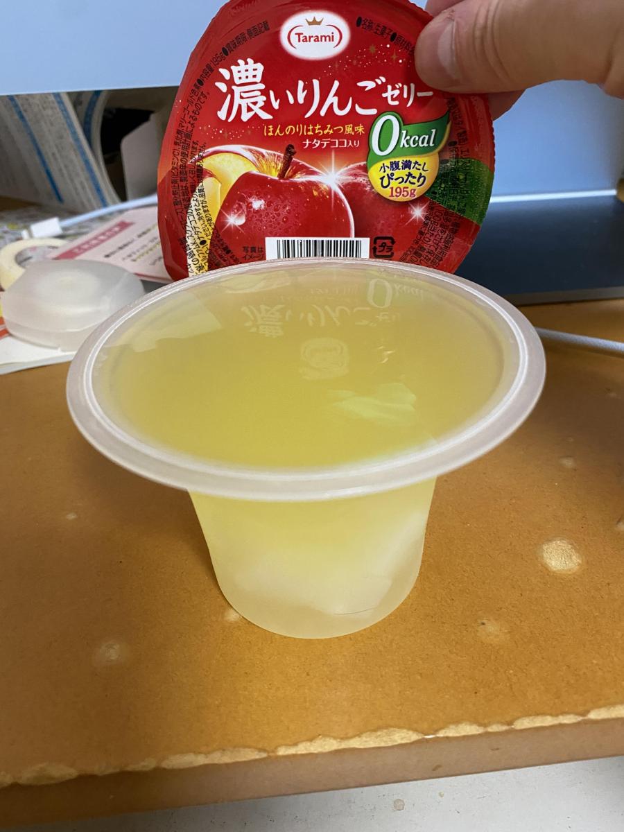 マンゴー、マスカットと食べて、最後にりんごを買いました。りんごのゼリーってあまりないし、珍しいし、どうなんだろう?
