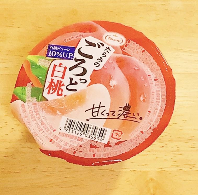 たらみのどっさり白桃はあちこちのスーパーによく売ってるので、何回もリピしてます。コンビニで、ごろっと白桃を見つけました。