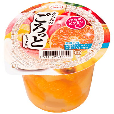 ネーミング通りフルーツがごろっと入っています。みかん、パインやりんご、黄桃、白桃の5種類のフルーツは大きめにカットされているので果肉の食べ応えがあり柔らかなゼリーと2つの食感が楽しめます。