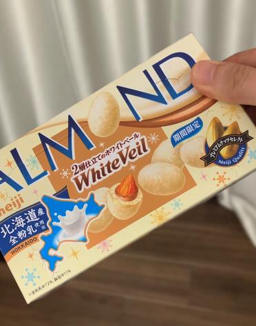 ホワイトチョコと白いパウダーをまとったアーモンドチョコレートのおいしそうなイラストに惹かれて買ってみました。ホワイトチョコの下にミルクチョコもコーティングされていますが、全体的にまろやかすぎる味わいで少し物足りなく感じました。もう少し、コクや濃厚さも味わいたかったです。