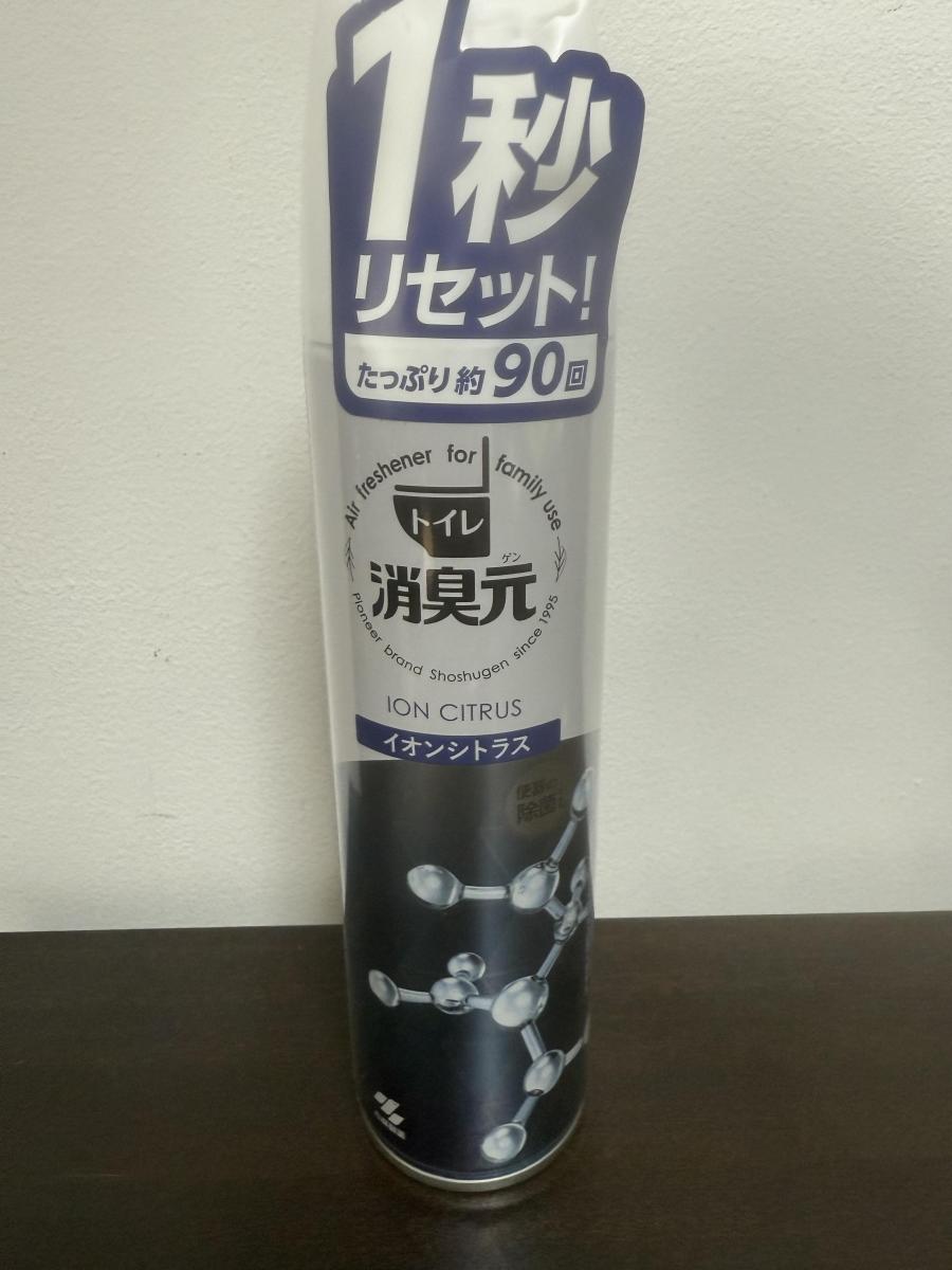 シュッと一吹きすると、瞬時にトイレが爽やかな空間になるのが良いです。鼻につかない自然は香りです。これをイオンシトラスというのか、万人受けする香りだと思います。ラベルがおしゃれで、トイレに置いていても気にならないのもいいですね。