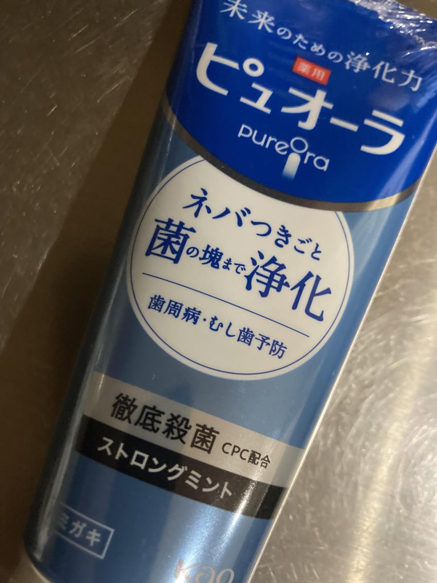 ピュオーラの中でも、ストロングミントなので、磨いている瞬間から口の中が爽快になります。
