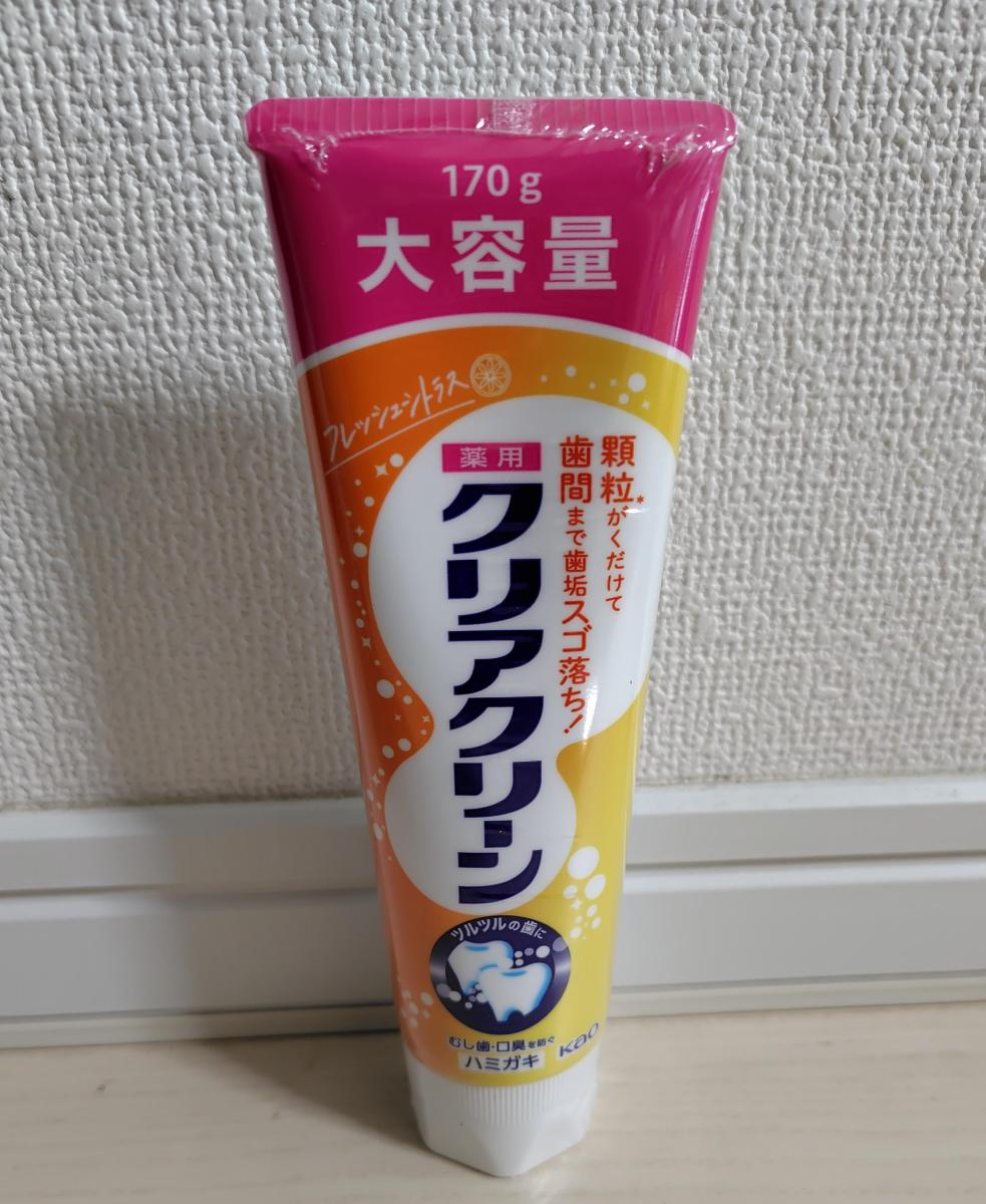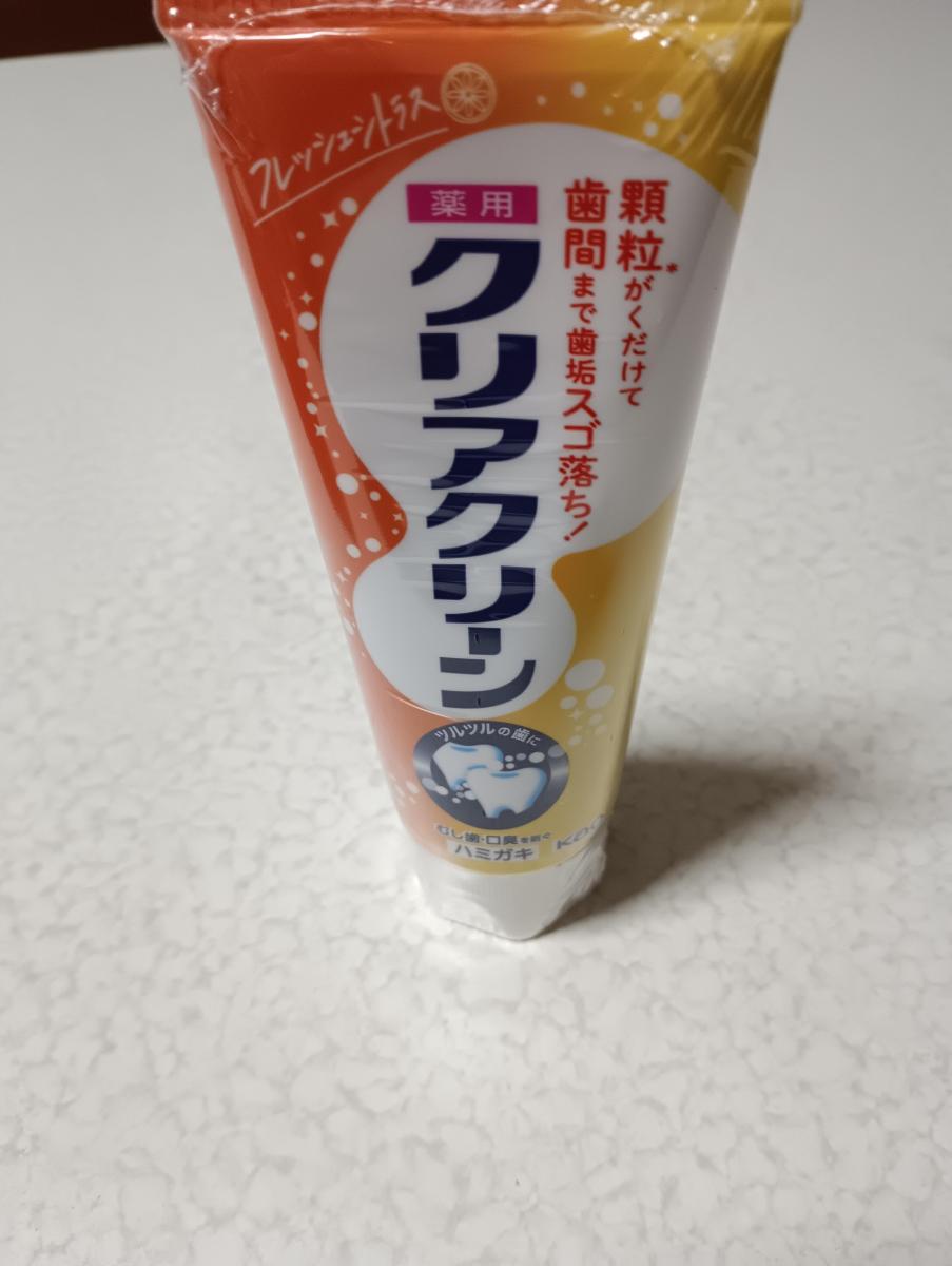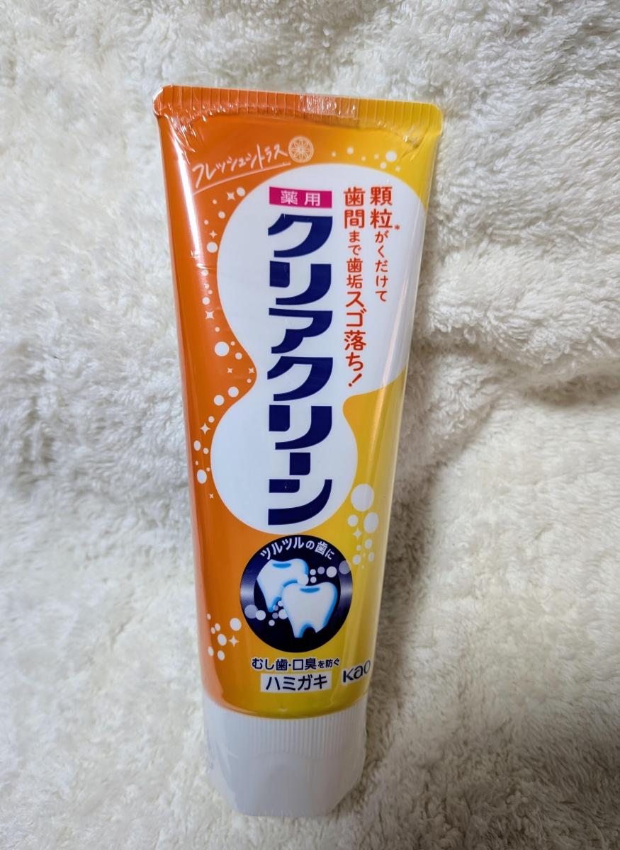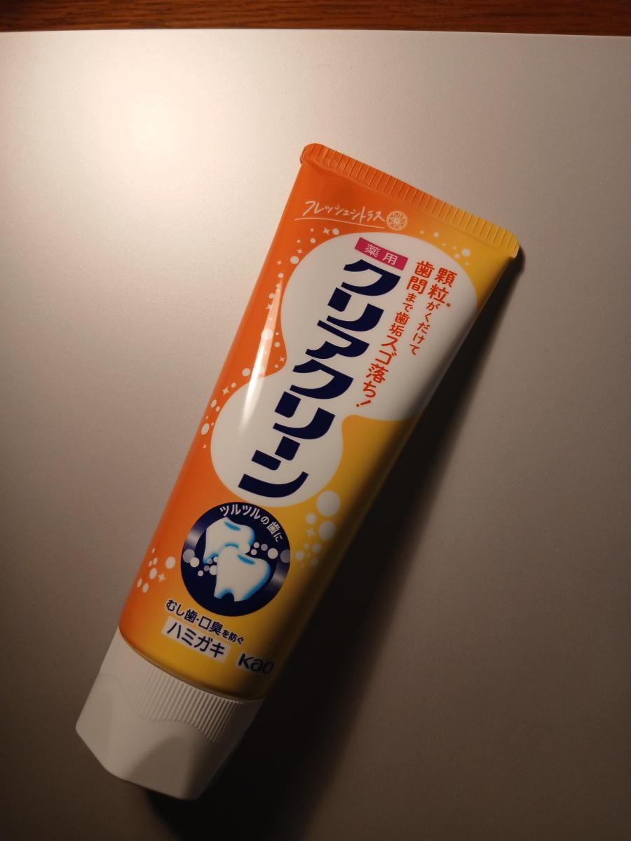 フレッシュシトラスという、ちょっと珍しい香味。磨いてみると、他のクリアクリーン同様、歯がツルツルになりコスパのよさを感じさせてくれます。