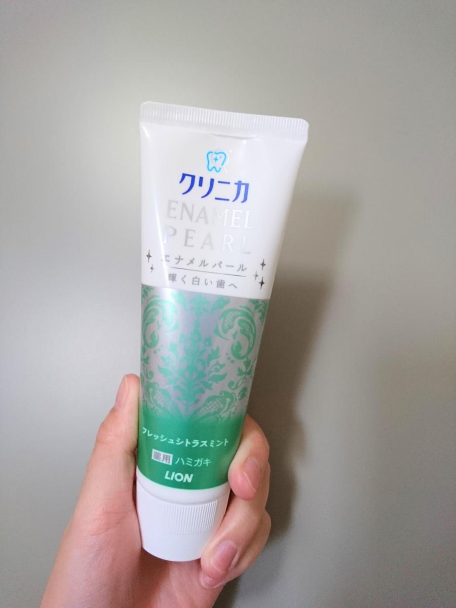 クリニカのエナメルパールのミント味の歯磨き粉。歯の表面がツルツルになり、歯垢が落ちている感はある。ステインなどは取れているかはわからないが、着色の汚れ落ちや、それを防ぐ効果を期待したい。