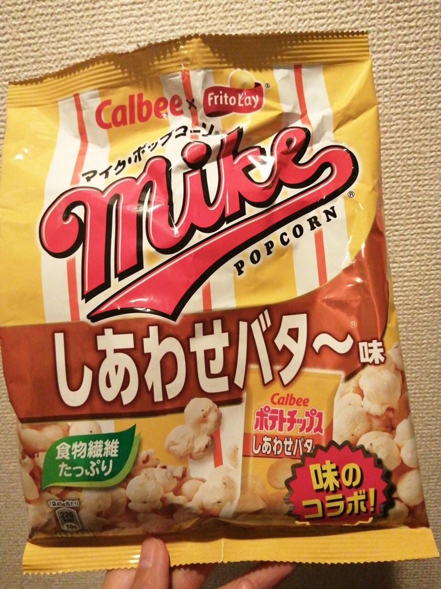 マイクポップコーンのバターしょうゆ味が好きでよく買うのですが、しあわせバタ〜味のカルビーポテトチップスも好きなので同じ味なのかなと思い購入してみました。
