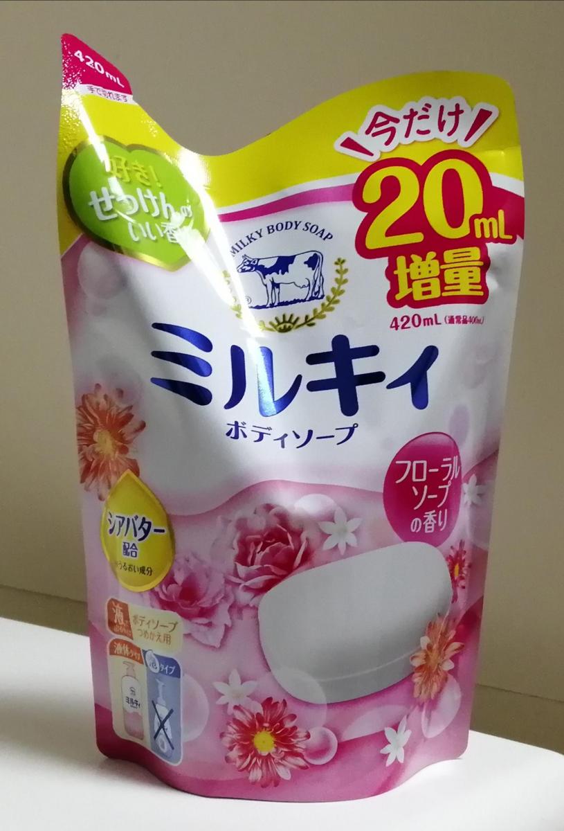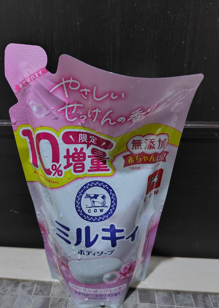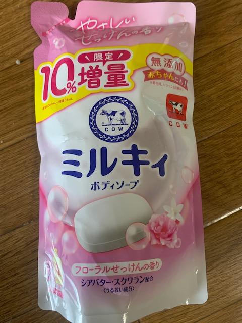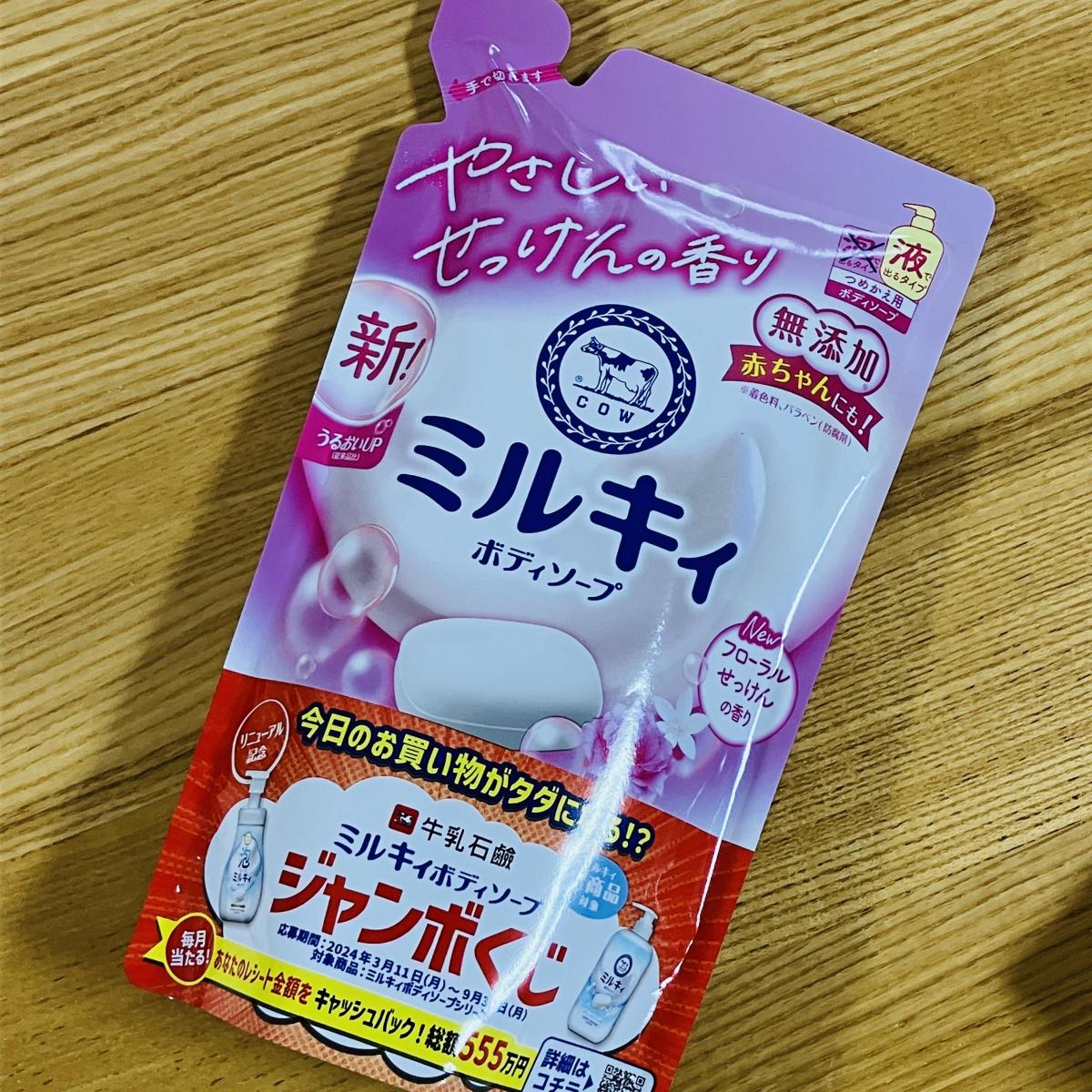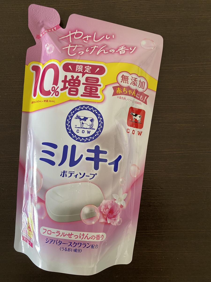 無添加で肌に優しく安心感ある牛乳石鹸のボディソープです。お値段が手頃でコスパ高く香りのバリエーションもあります。こちらはフローラルな香りがほどよく心地よいです。