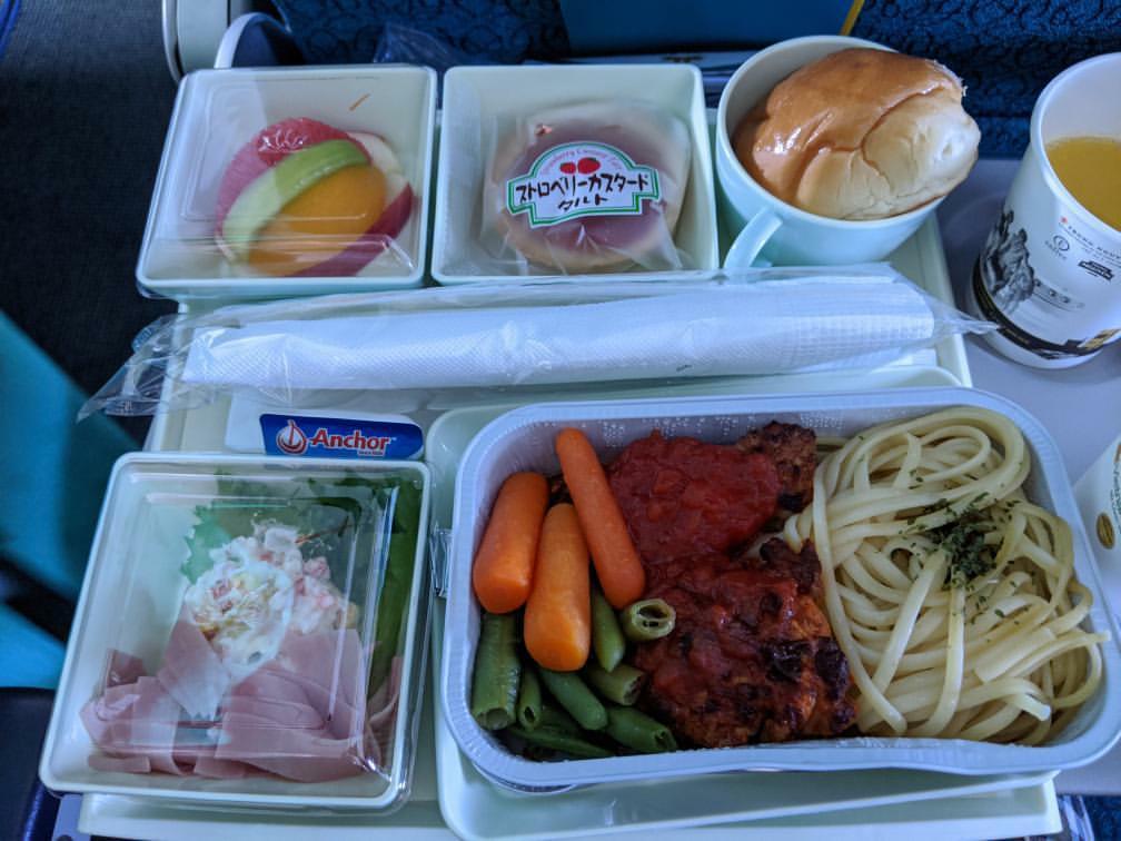 機内食はオードブル2回、メイン、デザートサービスがあり細かなサービスを受けることができました。