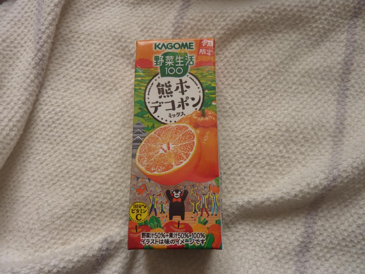 毎年、発売されている野菜生活のデコポンミックス。くまもんとのコラボでパッケージにくまもんがいます。爽やかで、デコポンの甘み味わいを感じられるジュースです。濃厚というより、あっさり飲めました。