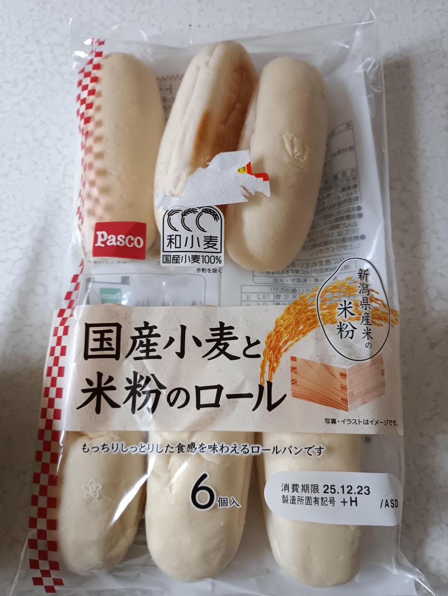 朝ごはんによく食べるパンです。米粉が使われているのでおなかの負担が少ないのがいいです。食感はもちもちしており、味も小麦だけのパンとは違ったおいしさがあります。