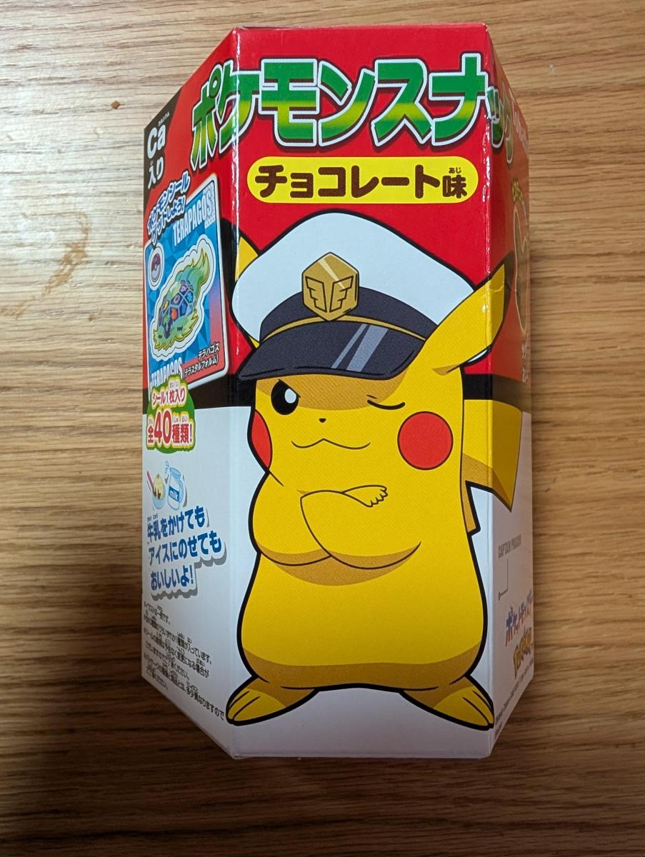 スナックはチョコレート味で、甘いですが軽くてサクサク食感、ポケモンの形をしていて癖になります。牛乳との相性抜群、子供も大人も満足の美味しさです。