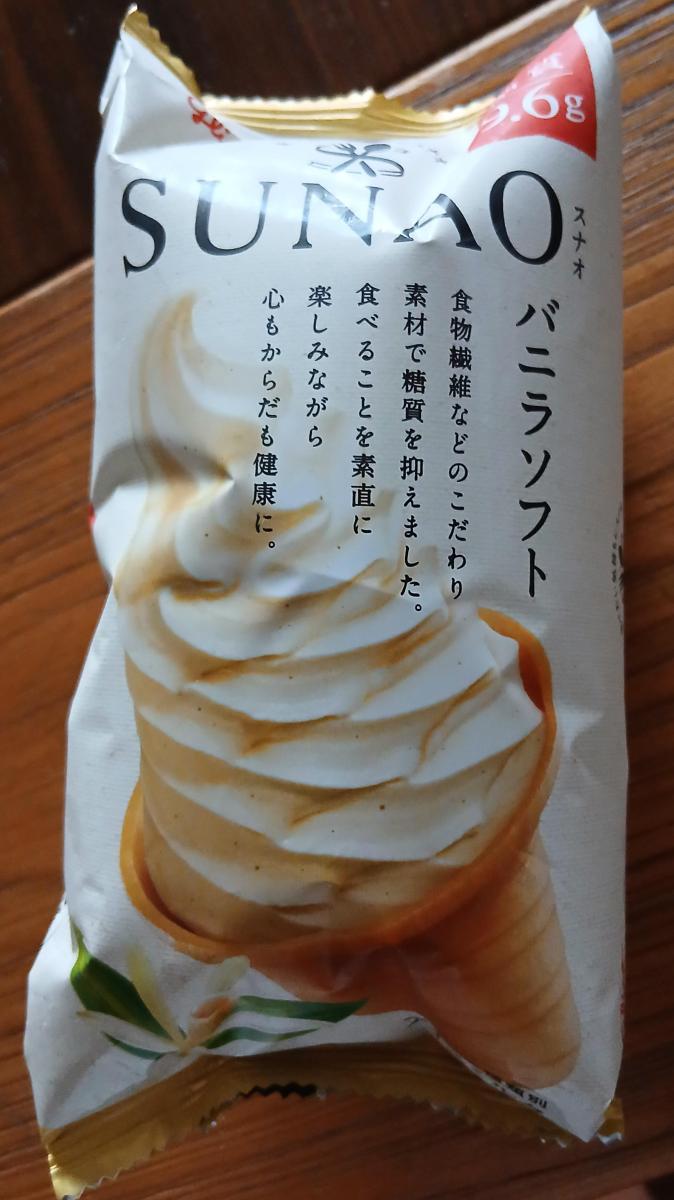 スナオのバニラソフトです。スナオシリーズはハズレがないのでたまに購入しています。ドーンと大きなソフトクリーム。見るからに満足感がありそうです。