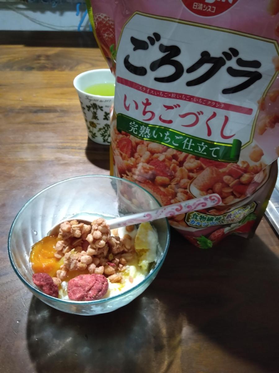 ようやくいちごづくしという、ピンクのかわいいパッケージのごろグラを買うことができました。