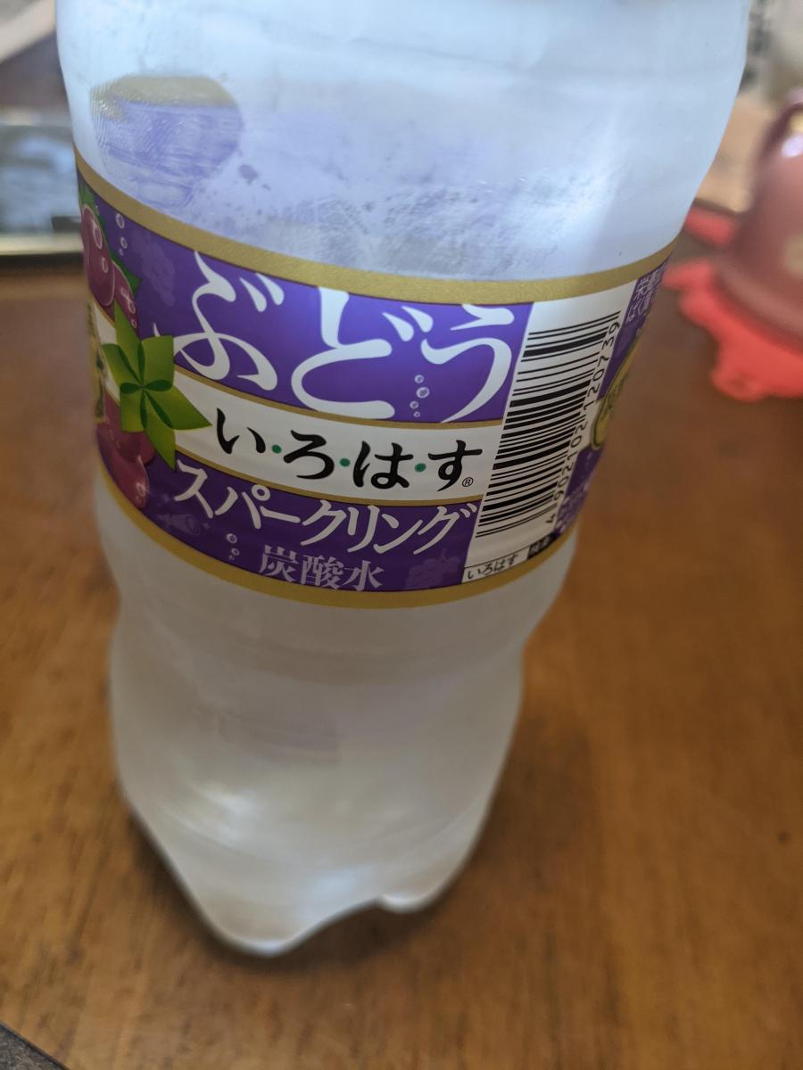 いろはすシリーズです!最近は飲んでなくて、久しぶりに購入してみました。見た目は無色の透明ですが、不思議な事に本当にぶどうの香りがします。もう定番化しましたよね、フレーバーウォーター。