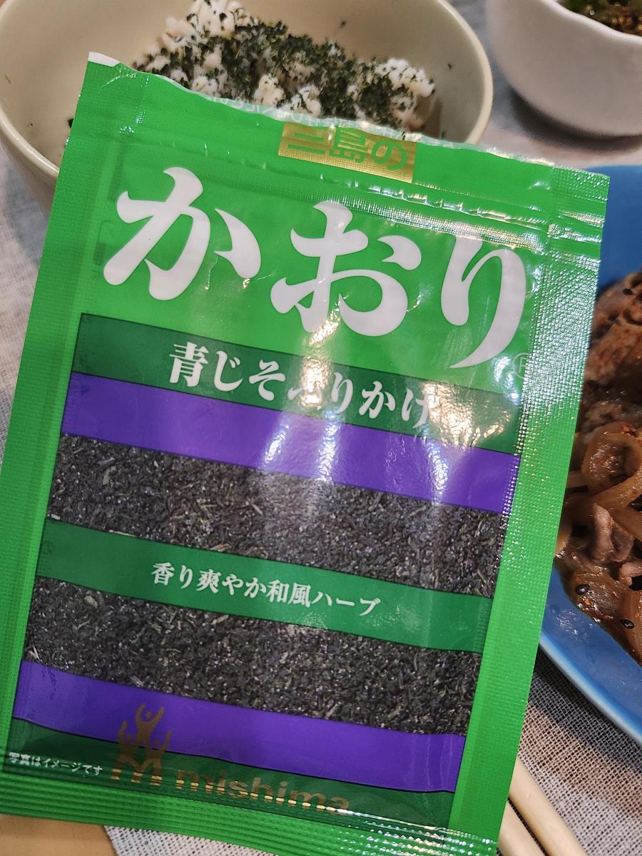 ゆかりが有名な三島のふりかけですが、かおりを見つけました。青じそふりかけ、和風ハーブとかかれているのでどんなのかと思いましたが、爽やかな香りで青じそのおいしさが堪能できます。おにぎりにするのに混ぜごはんみたいに1袋全部混ぜて作ってみたら、色合いが緑でとてもキレイでお弁当が華やぎました。塩加減はやや穏やかですが、おかずも濃い目なのでちょうどよくおいしくいただきました。リピ決定です。