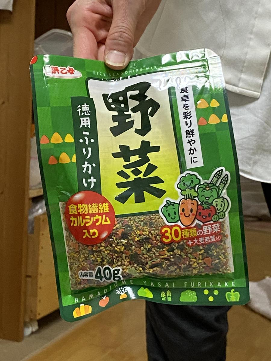 ごく普通のふりかけのようなものなのですが、三十種類の野菜を使っているようでいろいろな味わいを楽しめます。それほどパッとした個性はないのですが、飽きない美味しさがあるので定番になりました。ご飯が楽しくなります。お弁当にもいいですよ。