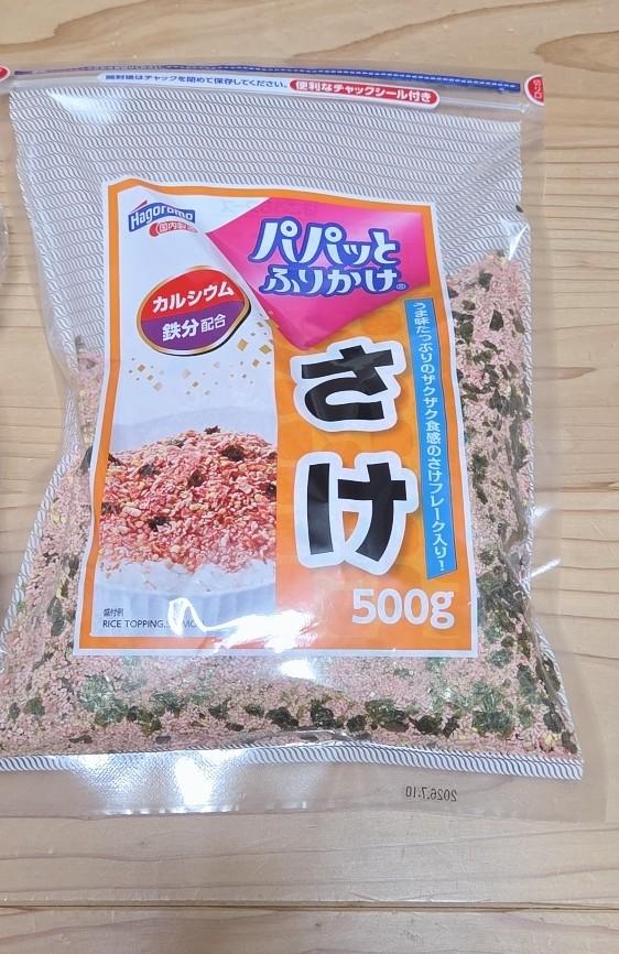 ザクザク食感が楽しくおいしいふりかけです。鮭フレークも入っているので食べ応えがあります。はごろものパパパッとふりかけシリーズはカルシウムや鉄分が配合されているのが嬉しいです。