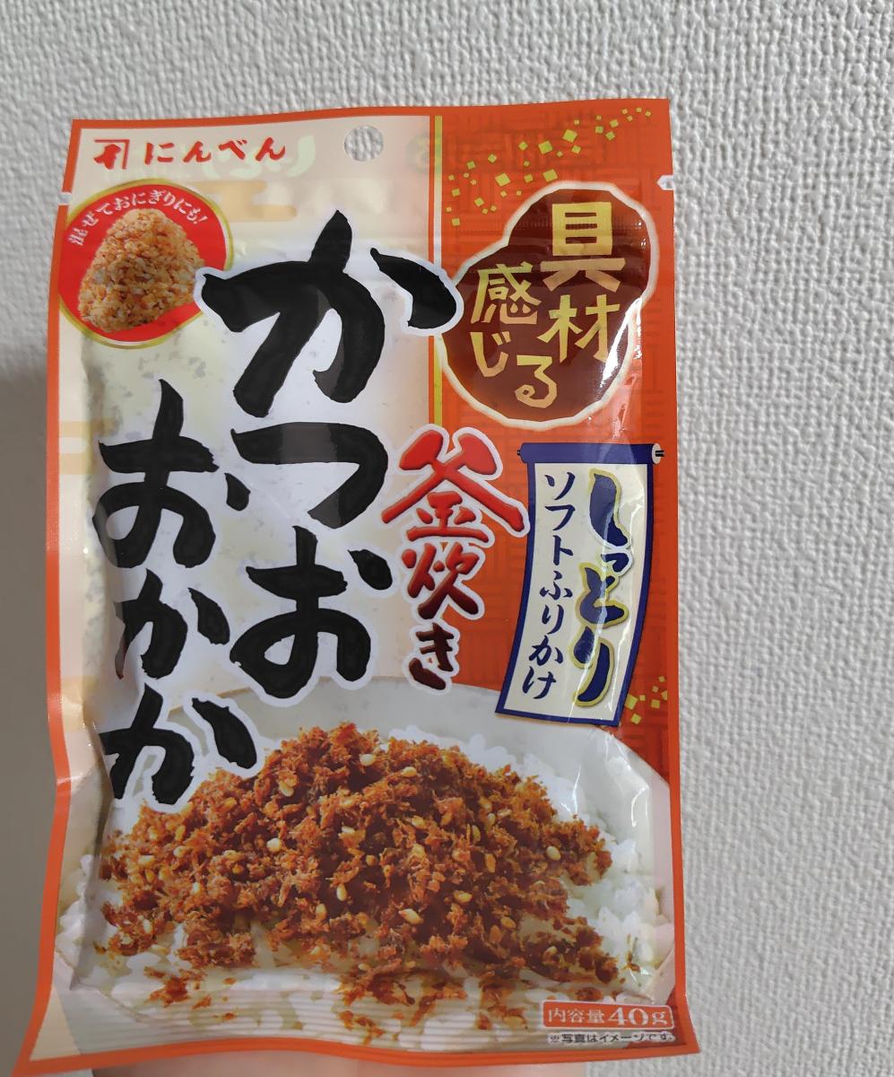 スーパーの売り出しワゴンコーナーに並んでいた商品でお手ごろ価格、ちょうどふりかけを探していたので購入しました。開封するとかつおが圧縮されたように固まってぱらぱらしたフレーバーになっています。スプーンに入れるとしっかりスプーンの先の丸い形に合わせて固まるほどしっとりしています。食べてみると、かつおに甘辛い味がついて美味しいです。ごはんにかけて、混ぜていると、かつおの色あいにごはんが変身します。味がまろやかになじんでとても美味しくいただきました。のり弁ののりの下に広げているおかかの甘辛さを懐かしく思い出します。そうだ!のり弁作ろう!という時におすすめしたいふりかけです。