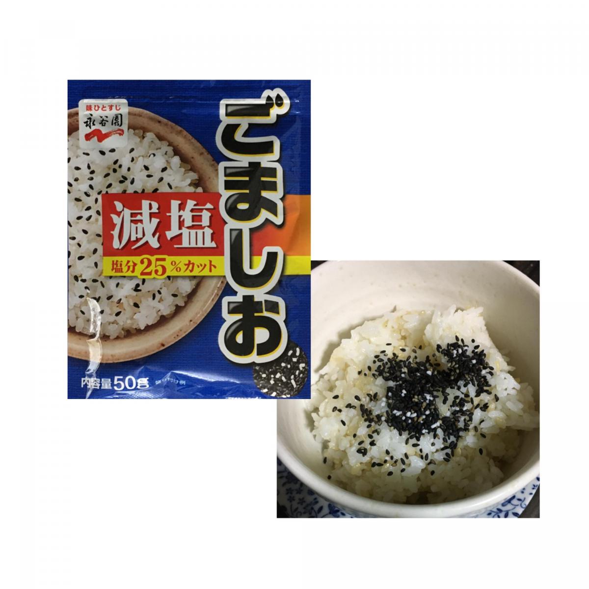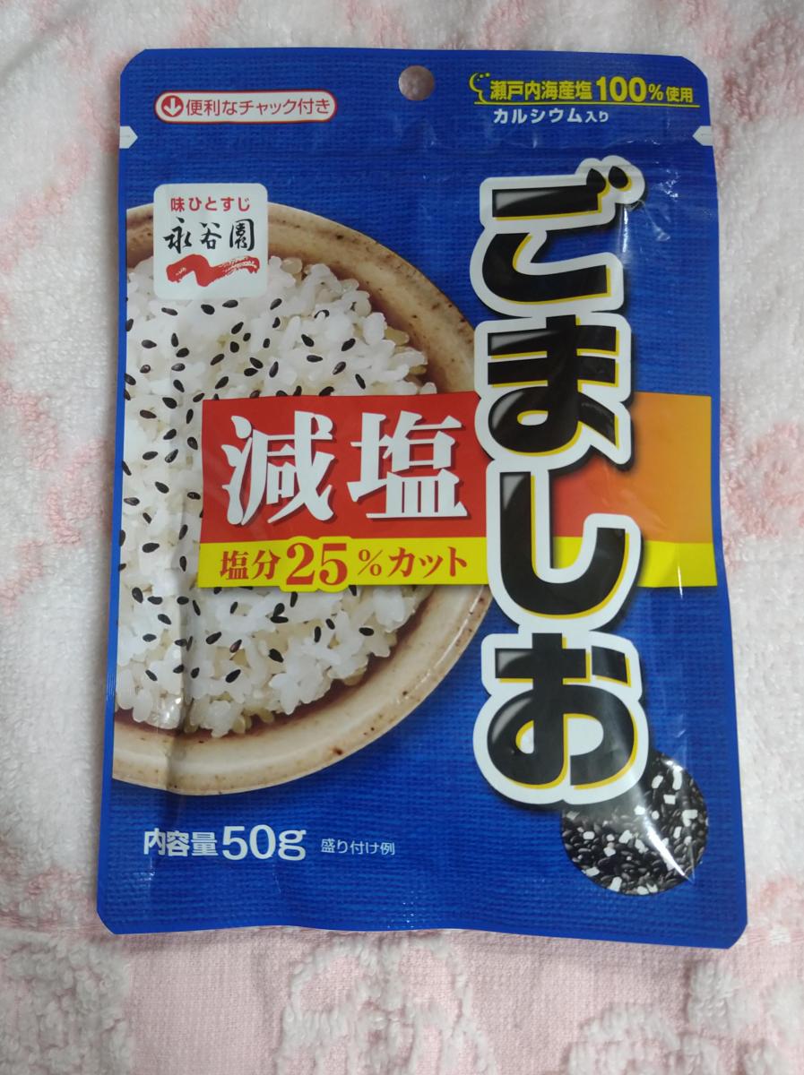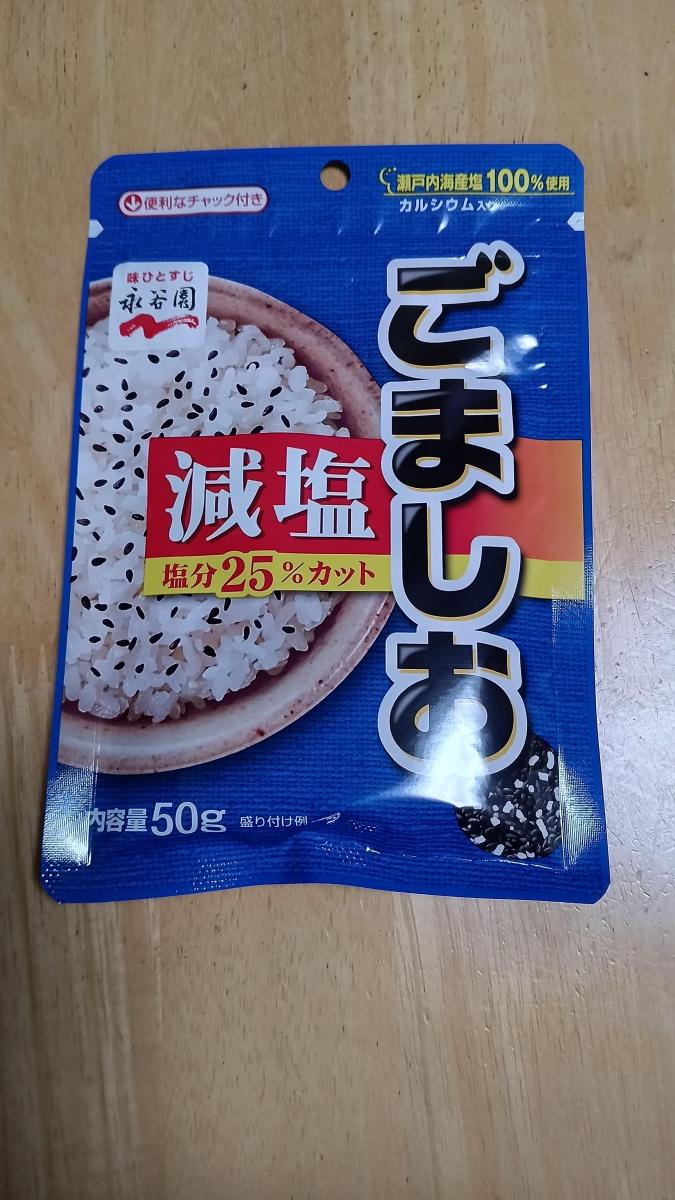 減塩のごま塩ということですが、全然減塩しているように感じないので、知らない間に塩分が少なくなっていてとても得した感じがします。このごま塩で十分で、満足感があります。