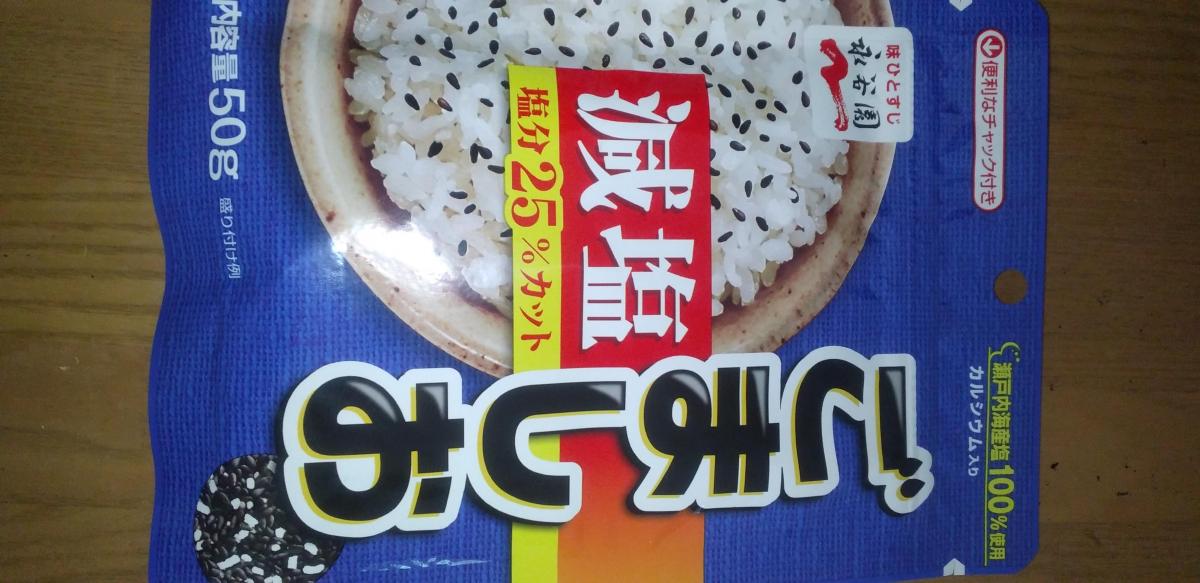 ごま塩ふりかけが好きなのですが、塩気が強いので、塩分過剰かなぁと気になっていました。ネットで検索すると、永谷園から減塩タイプのものが出ている事を知り、早速試しに購入です。薄い味かなと思っていましたが、減塩でもかなり塩辛さを感じます。もう少し、40%くらいまで塩分が少なくてもいいかな。