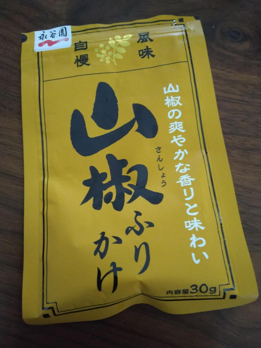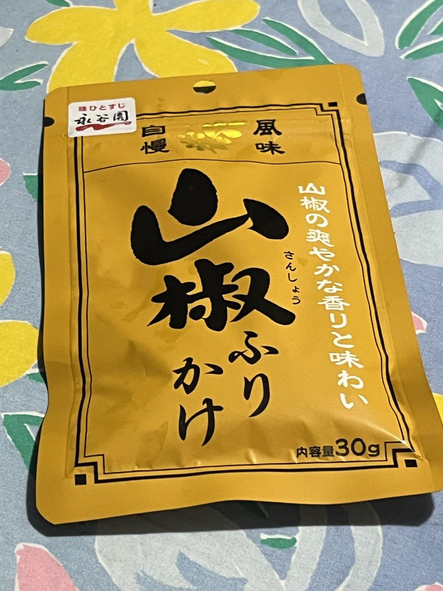 なんとなく通りかかったふりかけ売り場で、黄色いパッケージに黒い山椒の文字が映えて、買ってみました。