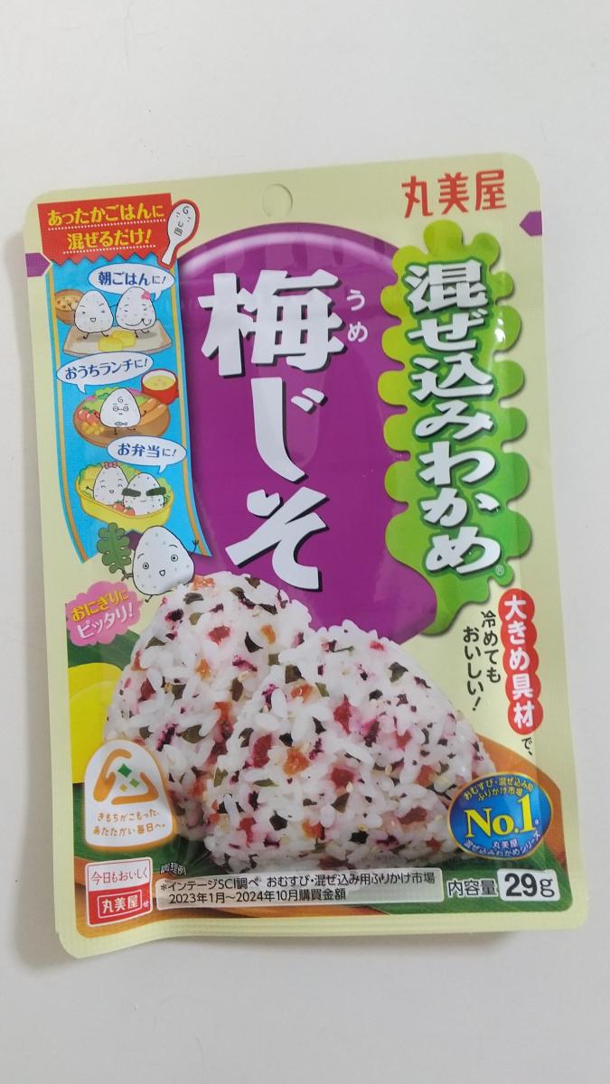 ふりかけの種類としては、わりとよくあるタイプの梅じそだと思いますが、混ぜ込みわかめの梅じそなので、一味違いそうです。