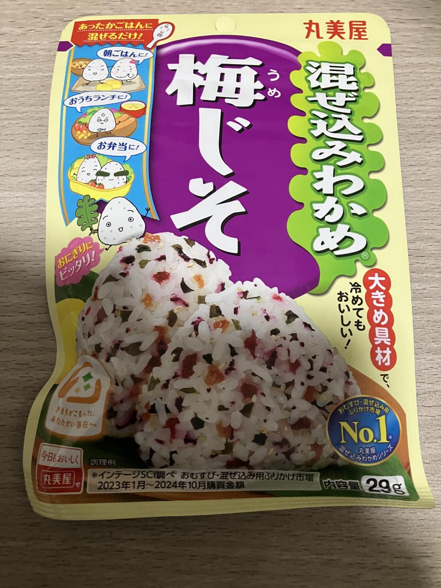 混ぜ込みわかめシリーズの梅しそは梅の酸味が効いていてごはんによく合います。フリーズドライのわかめのサクサクとした食感も良いです。温かいごはんに混ぜるだけで簡単にできるので重宝しています。色合いも紫で綺麗です。