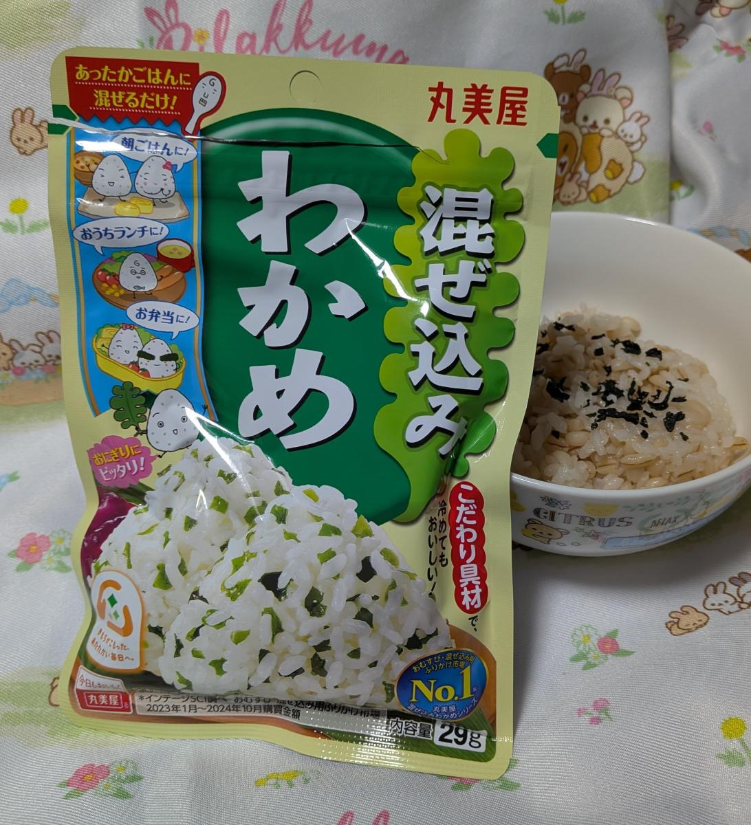 最近買った混ぜ込みわかめのとあるシリーズ、夫があまり口に合わなかったみたいで冷蔵庫での減りも遅かったのです。そんな時にこのわかめを食卓に出したらあっという間に無くなる程大盛況!