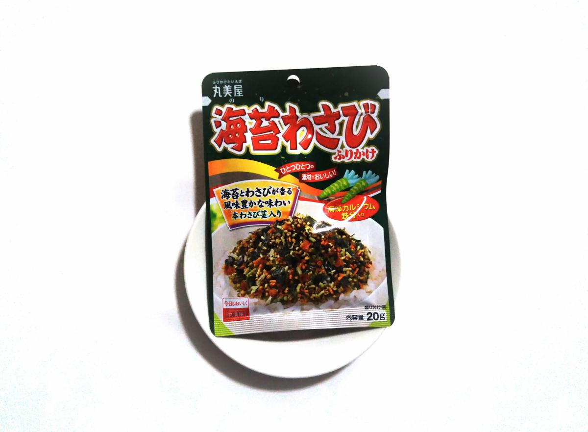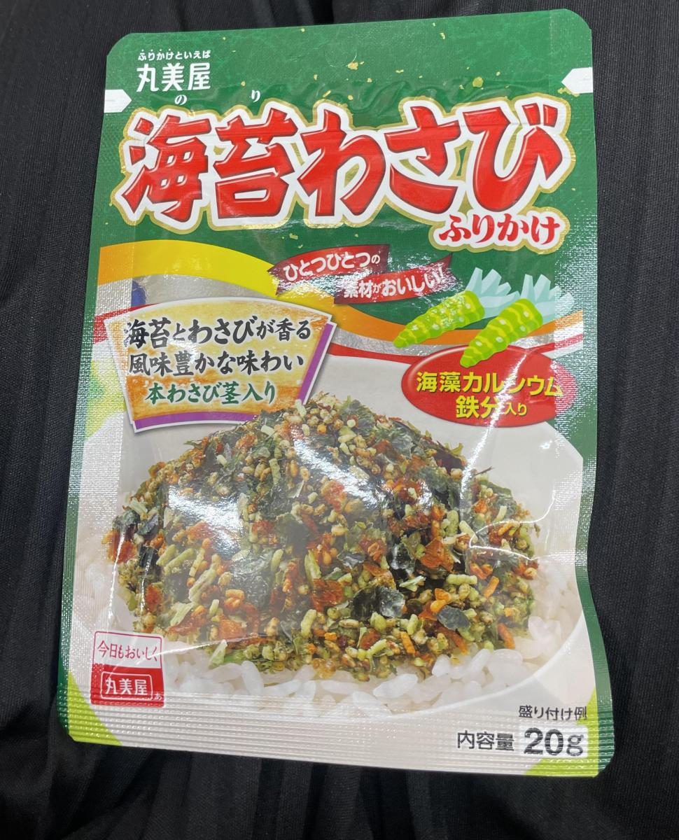 丸美屋のふりかけはいつものりたまを買っていますが、たまには味変したくなって買ってみました。ツンとしたわさびの辛みがけっこうあって、本格的な味わいです。のりやごまの風味がアクセントになっていて、ごはんが進みます。カルシウムや鉄分が摂れるのもいいです。