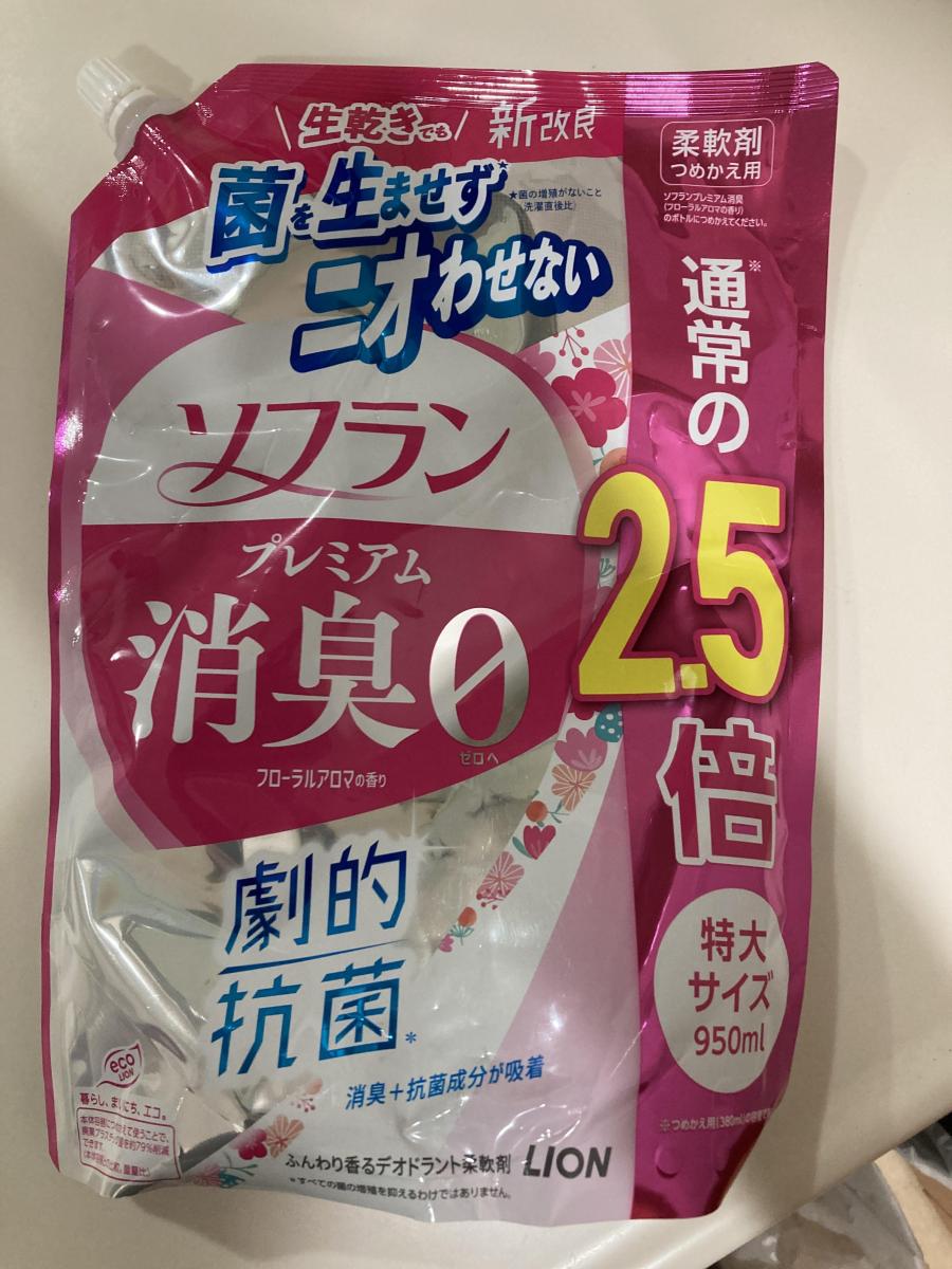 消臭効果があり、タオルや衣類がふんわり仕上がるソフランはどこのドラッグストアでもだいたい購入できるので長期間使っています。こちらの香りは初めて使いましたがお花のやさしい香りが広がりました。洗いあがりも干すときも、仕上がりもいい香りがしますが強すぎることはなく香りが長続きします。どちらかというと女性向けの香りなので家族で、洗うもので使い分けています。