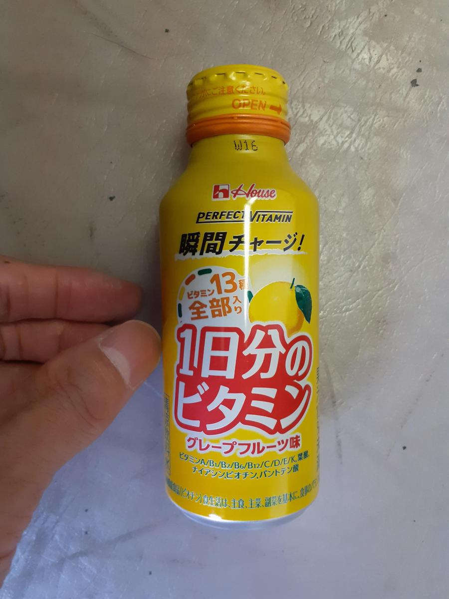 コンビニで見かけて購入してみました。ハウスの一日分のビタミン グレープフルーツ味、ビタミンが一本に13種も入っており元気になれ気分も上がる一本です。グレープフルーツ味は、酸っぱくなくて甘さも控えめで飲みやすく120mlと量も丁度よいと思います。味も美味しいのでまたリピートしたいです。