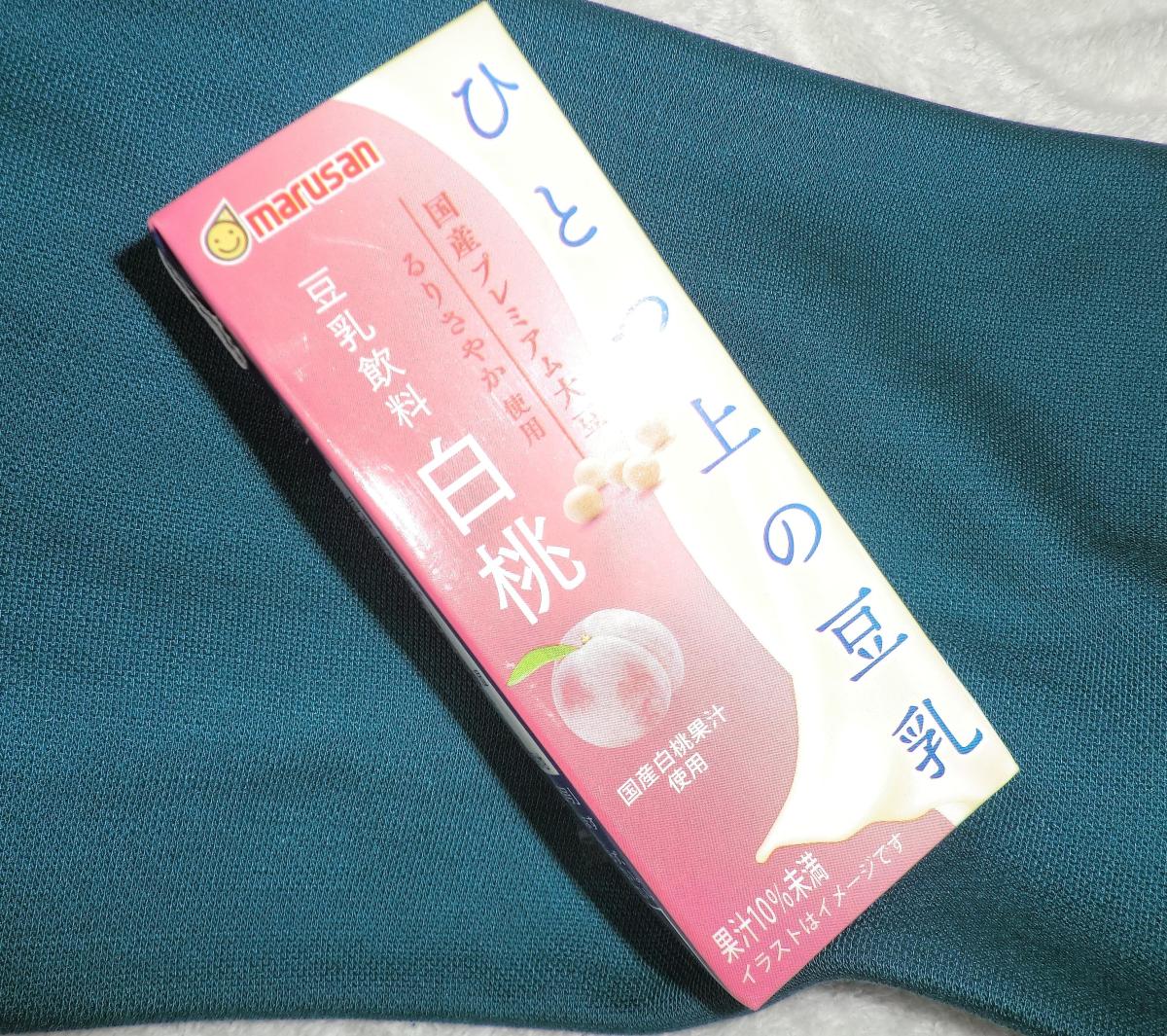白桃の味が甘くて爽やかな豆乳です。果汁10%でも白桃の味がナチュラルですし、豆乳はくせがなくて上品な口当たりなところが気に入ってます。